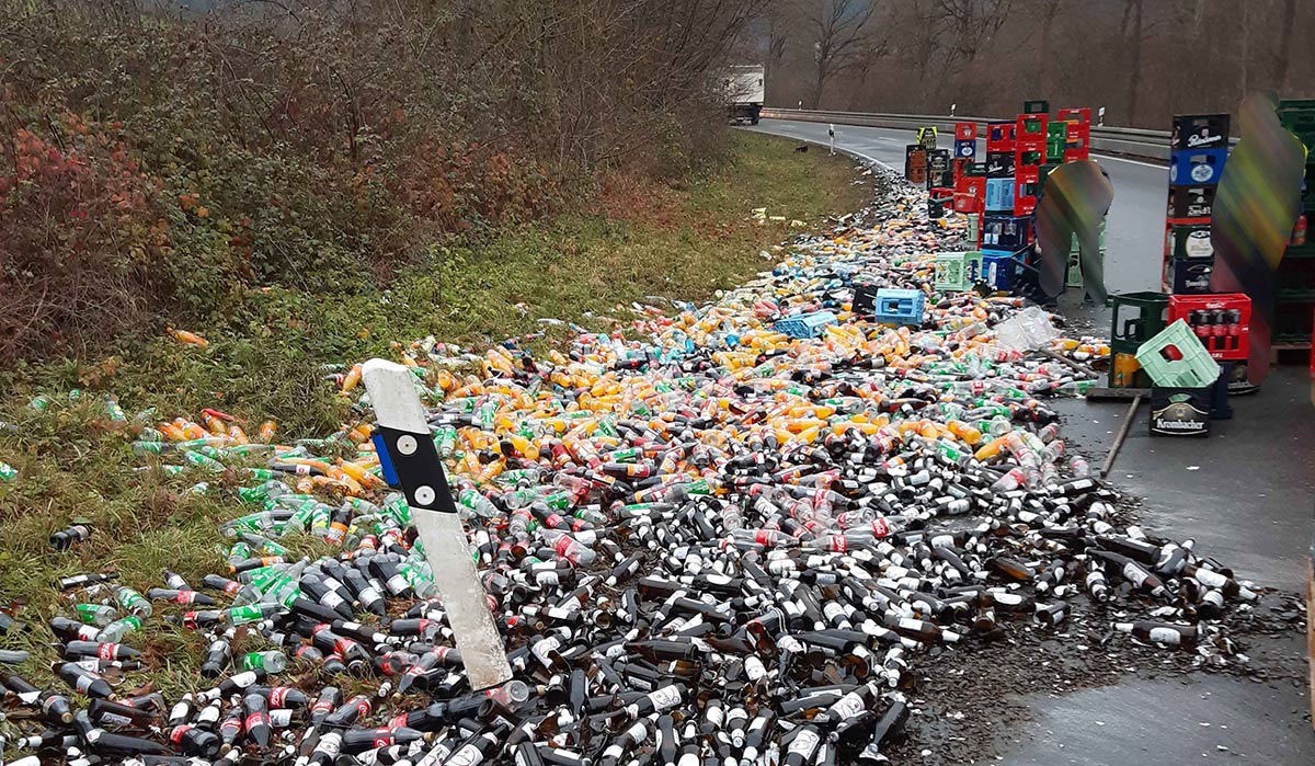 WAHNHAUSEN. Am Freitagmorgen gegen 6:50 Uhr verlor ein Getränkelaster auf der B 3 bei Fuldatal-Wahnhausen einen Teil seiner Ladung. Zahlreiche Getränkekisten und Flaschen verteilten sich über etwa 50 Meter auf der Gegenfahrbahn.
