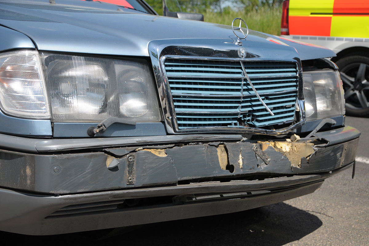 Durch die seitliche Kollision wurde der Audi von der Bundesstraße abgewiesen und krachte im Kreuzungsbereich frontal in eine Leitplanke.