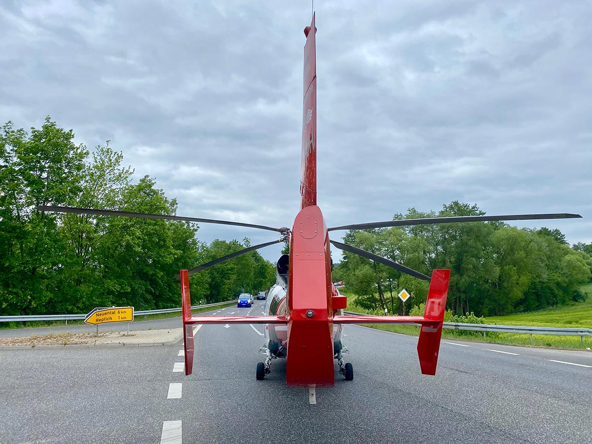 Während der Rettungsmaßnahmen und Landung des Rettungshubschraubers war die Bundesstraße für rund eine Stunde voll gesperrt. (mpu /wal)