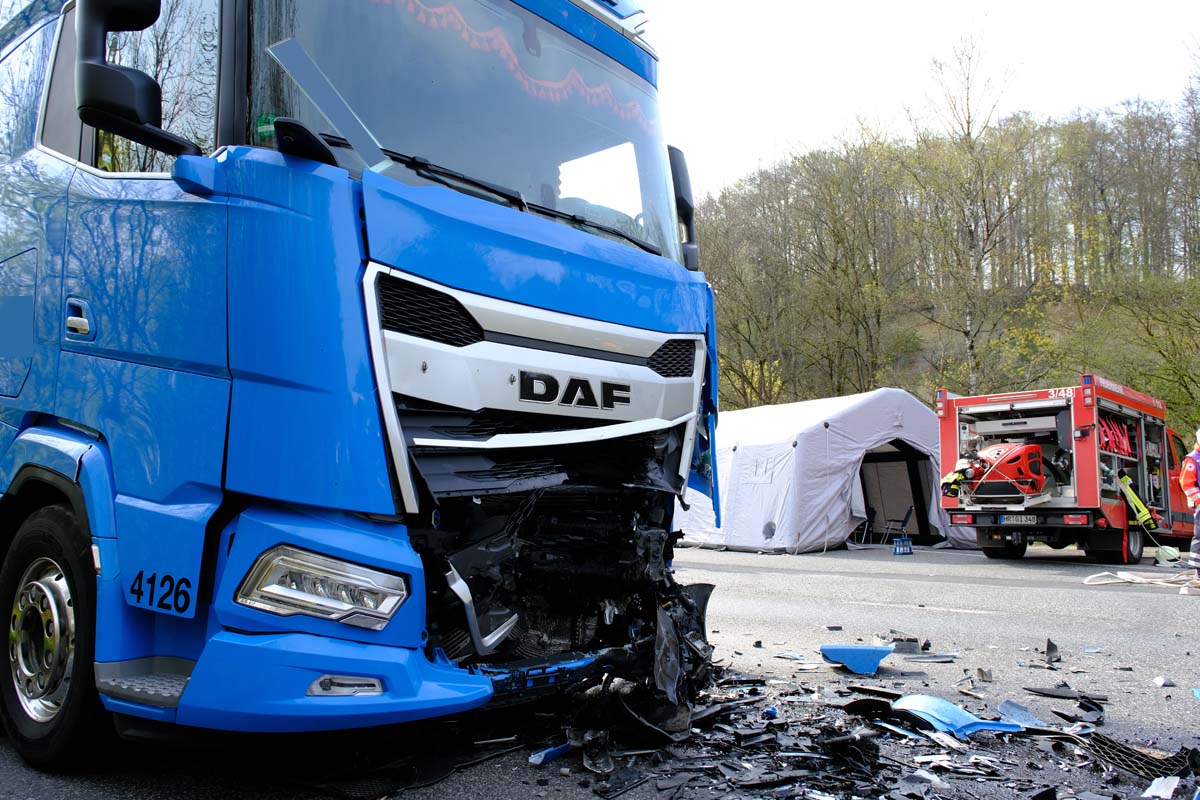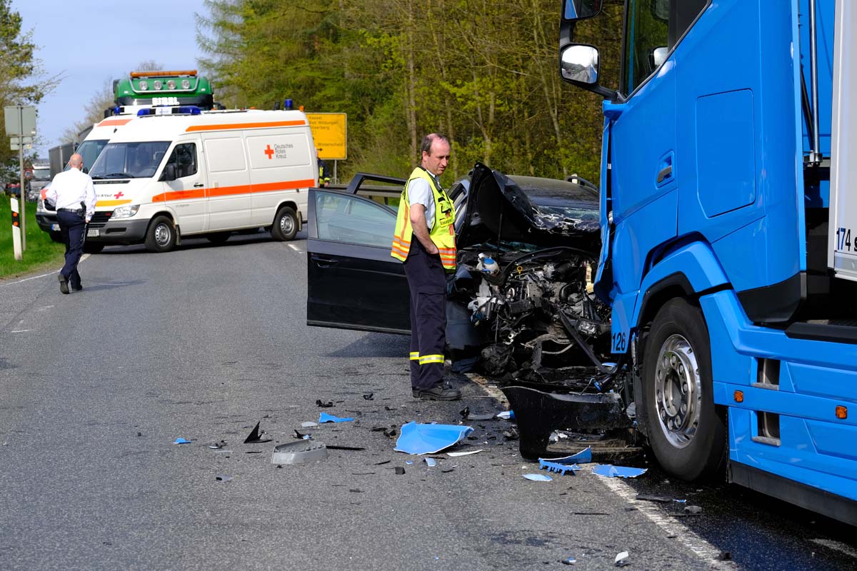 Ein Mann (34) und eine Frau (32) saßen vorn im Auto. Bislang ist unklar, wer von beiden den Pkw fuhr. Den 34-Jährigen flog die Crew eines Rettungshubschraubers nach seiner Erstversorgung mit schweren, möglicherweise lebensbedrohlichen Verletzungen in das UKGM nach Marburg, die 32-Jährige brachte ein Rettungsteam mit schweren, nicht lebensgefährlichen Verletzungen in das Asklepios Klinikum nach Schwalmstadt. Der 46 Jahre alte Fahrer des Sattelzugs wurde bei dem Unfall nicht verletzt. Der Zusammenprall ereignete sich mit augenscheinlich nicht sehr hoher Geschwindigkeit. So wurde zwar der Frontbereich des Pkw vollkommen zerstört, die Fahrgastzelle blieb aber weitgehend verschont – lediglich die Airbags hatten ausgelöst.