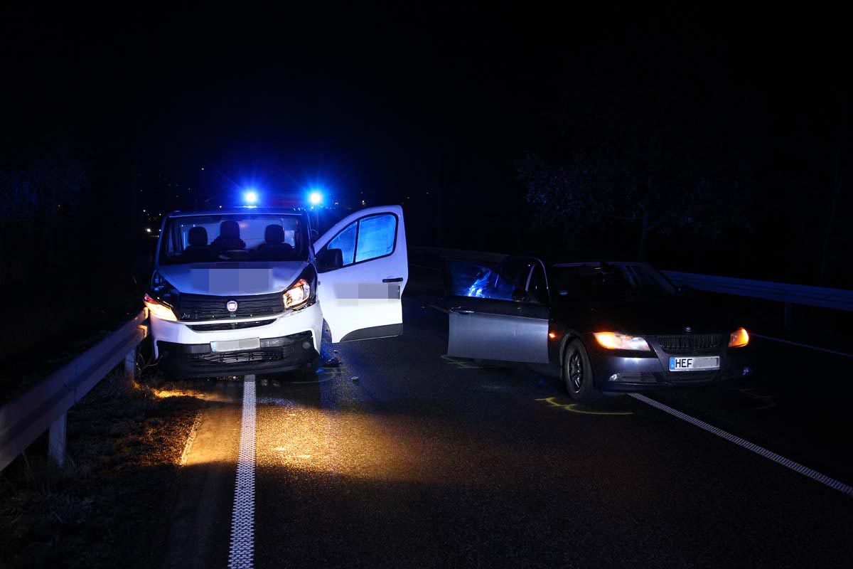 Zu dem Auffahrunfall kam des gegen 17:50 Uhr zwischen dem Kreisel in Remsfeld und dem Abzweig nach Relbehausen. Die Fahrerin eines 3er-BMWs (20, aus dem Landkreis Hersfeld-Rotenburg) musste aufgrund eines Pannen-Lkw auf der Fahrspur in Richtung Homberg abbremsen. Ihr folgte ein 42 Jahre alter Mann aus Stadtallendorf in einem Fiat-Lieferwagen. Der Mann erkannte den langsamer werdenden BMW zu spät und fuhr auf dessen Heck auf. In der Folge geriet der Lieferwagen nach rechts von der Fahrbahn ab, kollidierte dort leicht mit der Leitplanke und kam zum Stillstand. Der 42-Jährige erlitt laut Angaben eines Polizeisprechers schwere Verletzungen.