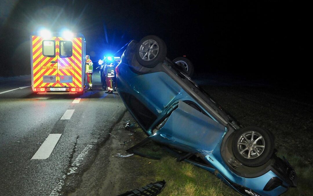 FRITZLAR. Zu einem Verkehrsunfall mit zwei PKW und einer verletzten Person kam es am Donnerstagabend auf der Bundesstraße 450 zwischen Borken und Fritzlar. Ein Fahrzeug überschlug sich und kam abseits der Straße auf dem Dach liegend zum Stillstand.
