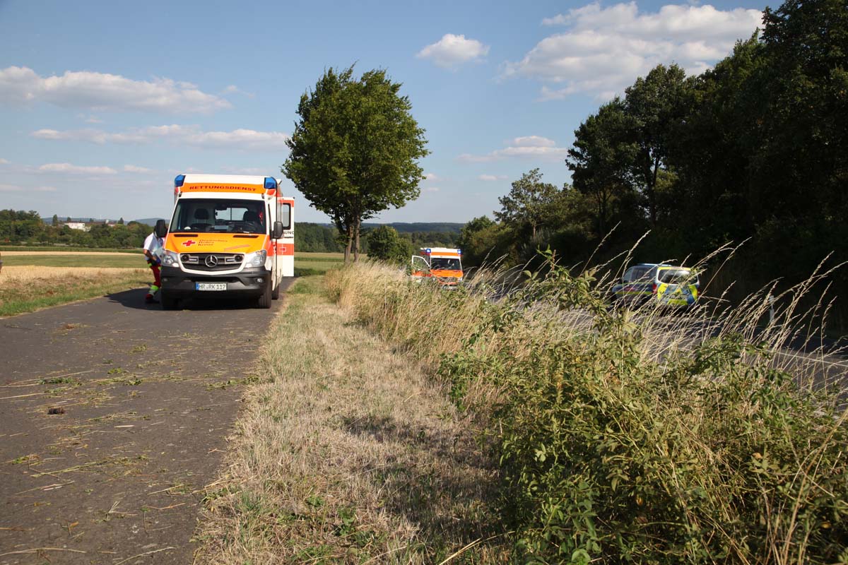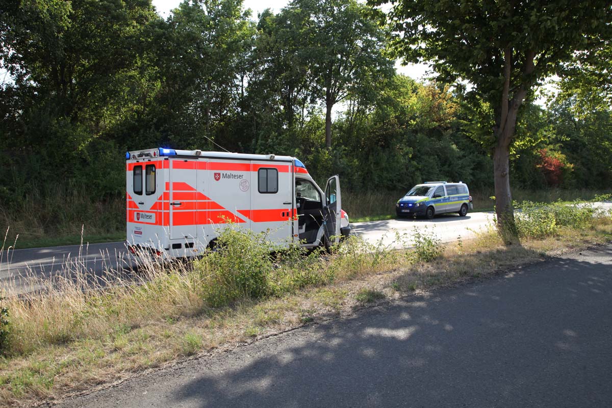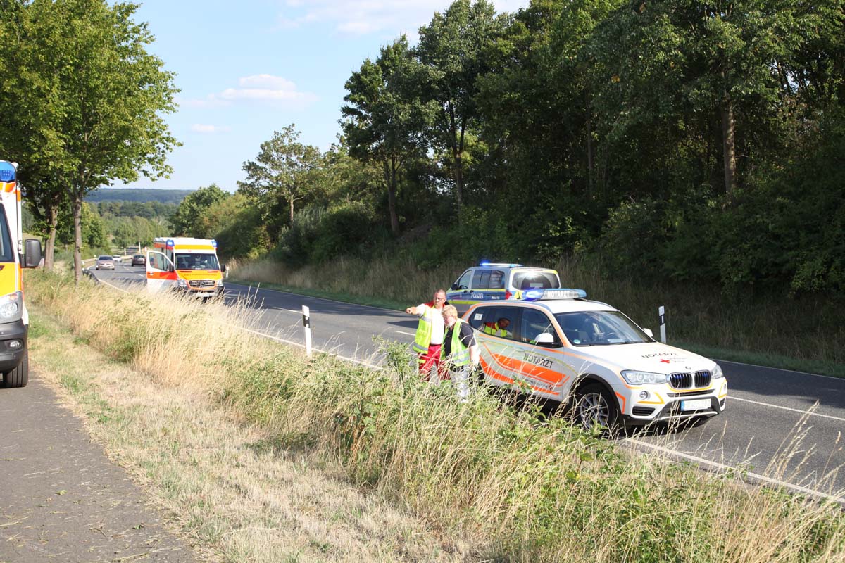 Die Hombergerin war mit ihrem älteren Audi A 3 auf der B 454 zwischen der Joneleit- und der Krankenhauskreuzung unterwegs. In einer lang gezogenen Rechtskurve geriet sie aus bislang unbekannten Gründen nach links von der Fahrbahn ab, fuhr einen rund zwei Meter hohen Hang hinauf, überwand einen Wirtschaftsweg und kam auf einem Stoppelfeld zum Stillstand. Ersthelfer und ein zufällig in der Nähe befindliches Rettungsteam des Malteser Hilfsdienst aus Jesberg waren unmittelbar zur Stelle. Die Malteser unterstützten ihre Kollegen des DRK bei der Rettung und Erstversorgung der 31-Jährigen, die anschließend, begleitet von der Notärztin, vom Rettungsteam in das nahe Krankenhaus gebracht wurde.