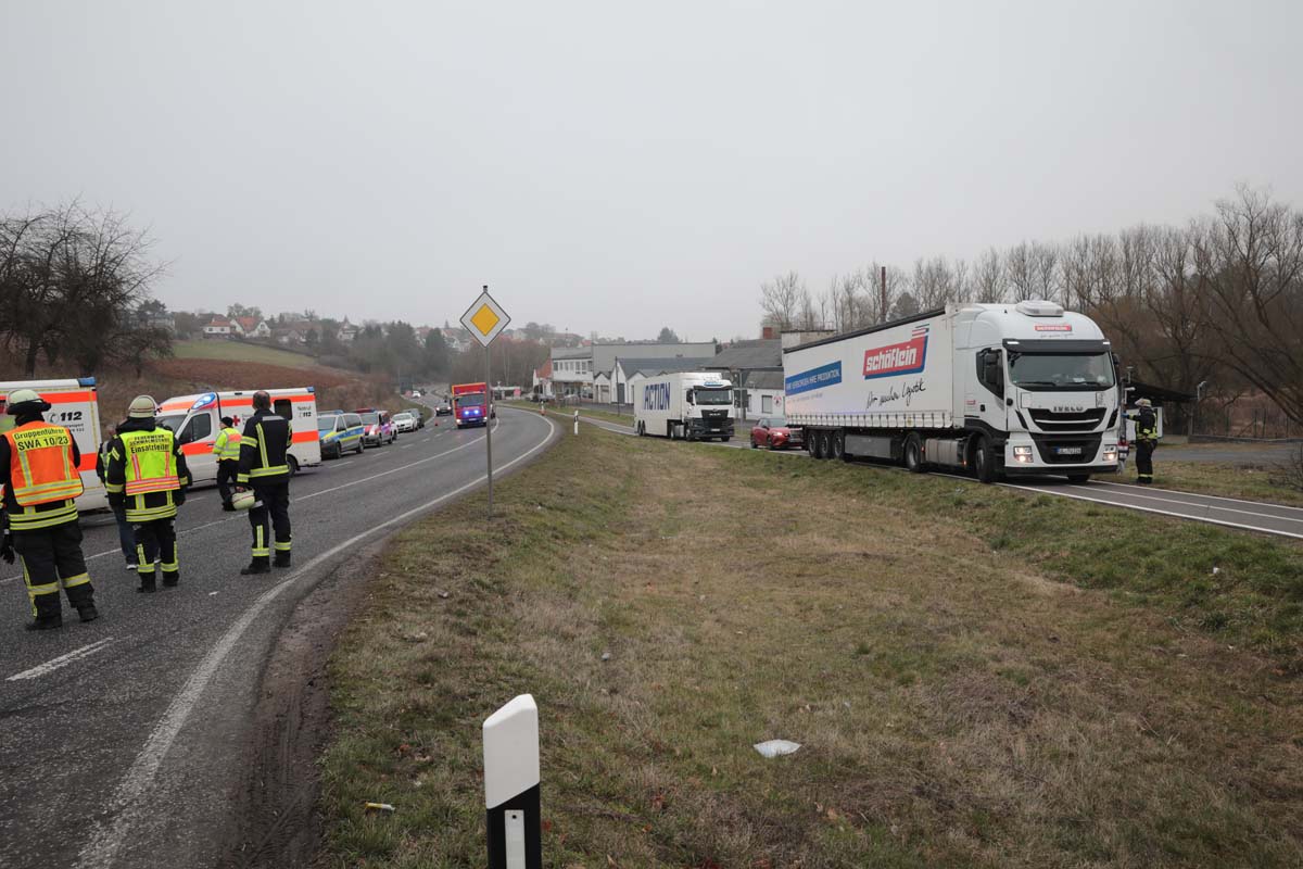 SCHWALMSTADT-TREYSA. Am Freitagmorgen sind bei einem Unfall im Kreuzungsbereich der B 454 und B 454a, Kreuzungsbereich Ortsausgang Treysa in Richtung Wiera, drei Pkw-Insassen teils schwer verletzt worden. Ein beteiligter Lkw-Fahrer blieb körperlich unverletzt, stand aber sichtlich unter dem Eindruck des Unfalls und wurde auch vom Rettungsdienst versorgt.