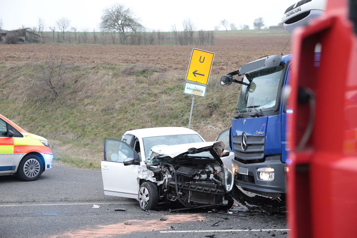Wie ein Beamter der Polizeistation Schwalmstadt berichtet, wollte zur Unfallzeit eine 37 Jahre alte Frau mit ihrem gleichaltrigen Beifahrer (beide osteuropäische Kriegsflüchtlinge) von Neustadt kommend im Kreuzungsbereich nach links in Richtung Gilserberg / A 49 abbiegen. Wie Zeugen sagten, blickte sie kurz nach rechts, fuhr dann aber wahrscheinlich ungebremst in den Kreuzungsbereich ein und prallte dort mit einer 21 Jahre alten VW-Fahrerin aus Neustadt zusammen, die von Gilserberg kommend in Richtung Treysa unterwegs war. Der Pkw der 21-Jährigen wurde durch den Zusammenprall auf die Gegenfahrbahn geschleudert und kam an einem Lkw zum Stillstand, dessen 22 Jahre alter Fahrer aus Neukirchen mithilfe einer Vollbremsung einen heftigen Aufprall auf den Kleinwagen verhindern konnte.