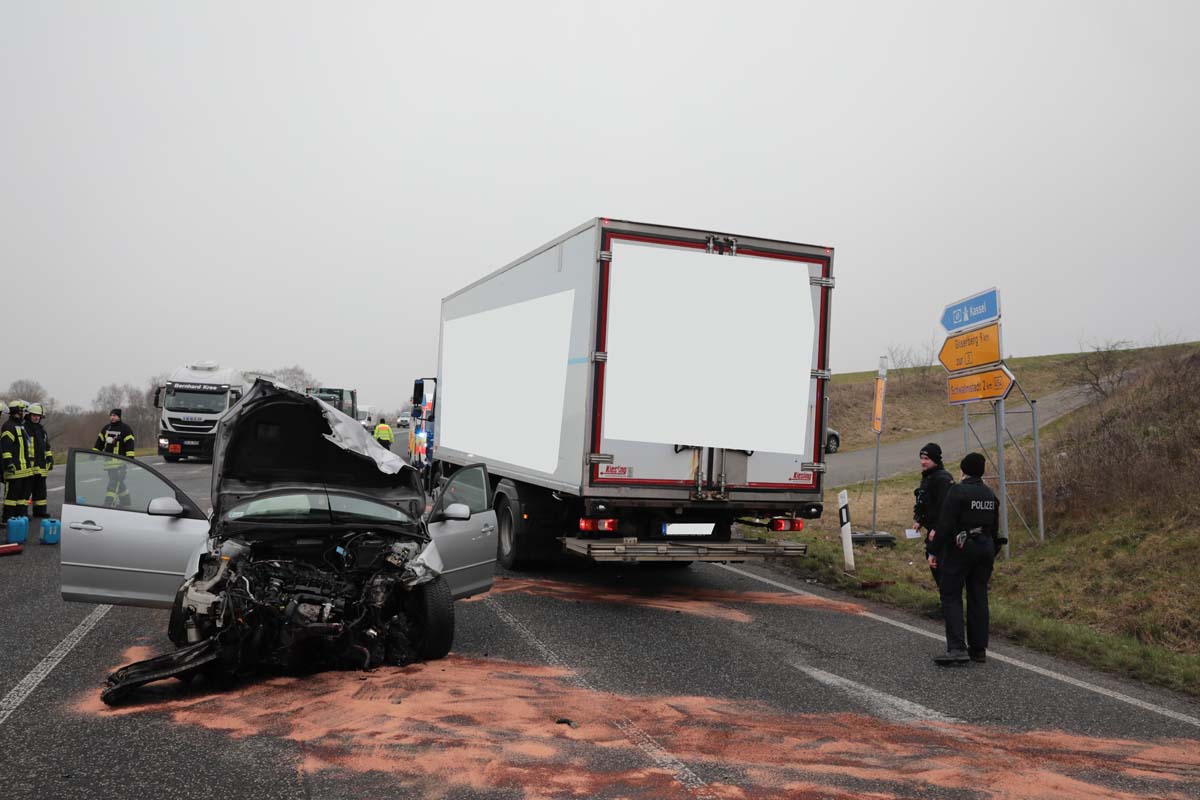 Die Unfallverursacherin, ihr Ehemann und die 21-Jähriger aus Neustadt erlitten schwere, keinesfalls lebensbedrohlichen Verletzungen. Rettungskräfte brachte sie in Kasseler Krankenhäuser. Den unter Schock stehenden 22 Jahre alten Lkw-Fahrer brachte ein Rettungsteam in das nahe Asklepios Klinikum.