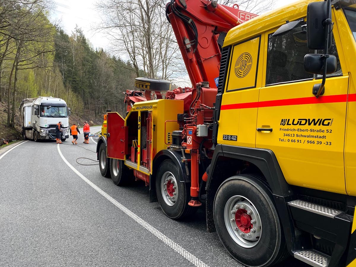 Die Tanks des Lkw wurden nicht beschädigt, andere Betriebsstoffe liefen auch nicht aus. Mit der Hilfe eines Berge-Lkw konnte ein Schwalmstädter Unternehmen den Sattelzug zügig aus dem Graben auf die Fahrbahn ziehen. Der Sattelzug musste anschließend abgeschleppt werden.