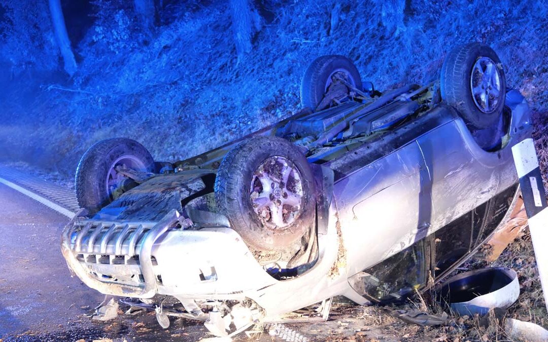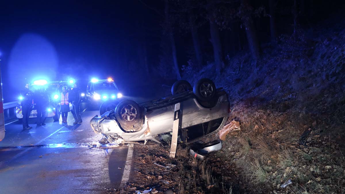 SCHWALMSTADT | NEUSTADT. Beamte der Polizeistation Schwalmstadt trafen am frühen Sonntagmorgen auf der Bundesstraße 454 zufällig auf einen Pkw, der sich überschlagen hatte, sowie auf den Fahrer des Autos, der beeindruckt um Unfallgeschehen, erheblich alkoholisiert und blutend neben seinem auf dem Dach liegenden Fahrzeug saß.
