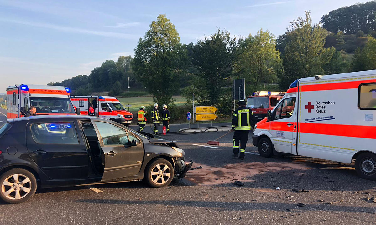 Zu dem Unfall kam es gegen 7:30 Uhr. Eine 49-Jährige aus Körle wollte von Wagenfurth auf die B 83 auffahren, mit im Auto hatte sie ihre 20-jährige Tochter. Beim Überqueren der Kreuzung übersah sie den Pkw einer 19-Jährigen aus Baunatal, die von ihrem gleichaltrigen Freund begleitet wurde. Die Fahrzeuge stießen im Kreuzungsbereich zusammen.