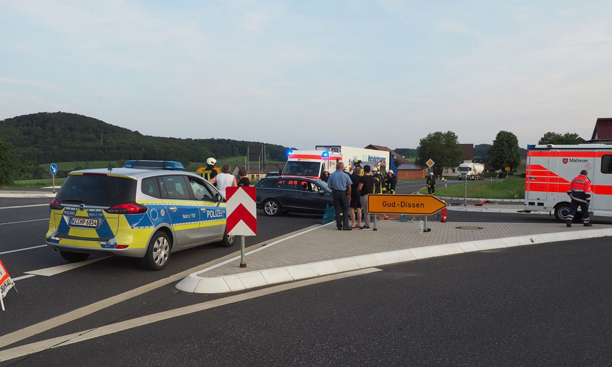 GUDENSBERG-DISSEN. Bei einem Unfall auf der B254 in Höhe von Dissen sind am Dienstag gegen 20 Uhr drei Kinder leicht verletzt worden. Der Rettungsdienst bracht sie vorsorglich in eine Klinik.