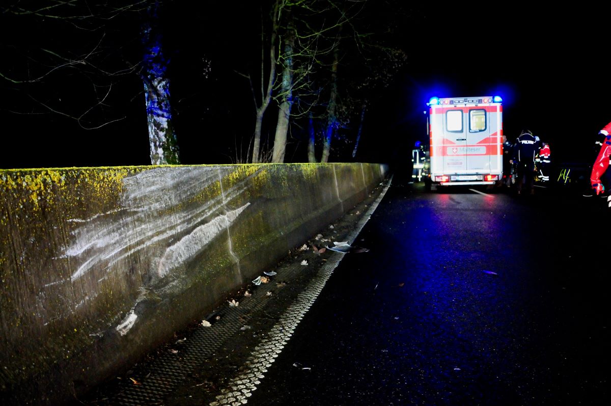 Drei Rettungswagen und die Feuerwehr eilten den drei jungen Menschen zur Hilfe, nachdem diese mit ihrem Fahrzeug in Höhe des Löwensprudelparks in eine Betonabgrenzung gekracht waren. Der 18-jährige Autofahrer aus Borken befuhr mit seinen gleichaltrigen Mitfahrern die Landstraße von Bad Zwesten in Richtung Niederurff, als er aus bislang ungeklärten Umständen nahezu frontal mit der Betonabgrenzung kollidierte. Das Fahrzeug schleuderte über die Fahrbahn und kam erheblich beschädigt quer zur Fahrbahn zum Stehen.