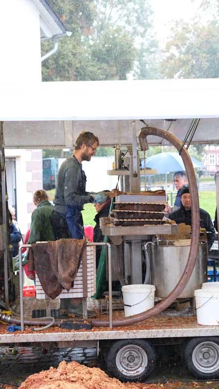 Zu den Angeboten gehörten frisches Obst und Gemüse, selbst gemachte Spezialitäten, Handwerkskunst sowie Mitmachaktionen für Kinder wie Kürbisschnitzen und Kerzenziehen. Wie in den Vorjahren konnten Besucher ihr selbst geerntetes Obst bei der „Saftique“ aus Witzenhausen zu Saft pressen lassen. Für die musikalische Begleitung sorgten die Wieraer Blasmusik sowie die Band „Take This“ mit Akustikmusik aus der Schwalm am Nachmittag. Auch das Rotkäppchen Maria-Lara Schmitt stattete dem Markt einen Besuch ab. (wal)