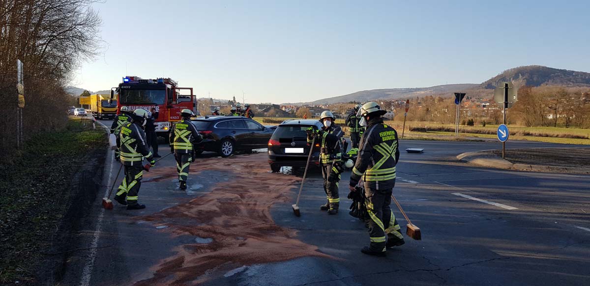 Die Brandschützer sicherten die Unfallstelle ab und banden ausgelaufene Betriebsmittel, berichtet Feuerwehrsprecher Sebastian Milas. Polizei und Feuerwehr waren rund zwei Stunden vor Ort.