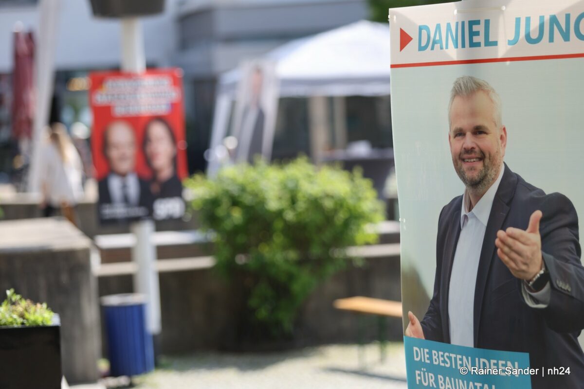 In Baunatal haben wir gestern Abend zum ersten Mal erlebt, dass bei der offiziellen Veranstaltung zwei Kandidaten gar nicht anwesend waren. Das hat uns überrascht. Es ist für nh24 weder üblich noch leistbar, bei Bürgermeisterwahlen dann rein private Partys aufzusuchen, zu denen wir nicht eingeladen sind. Das halten wir wiederum für respektlos. Deshalb haben wir das einzige Foto, das wir vom einzigen anwesenden Kandidaten (Daniel Jung) bei der Veranstaltung bekommen konnten wieder entfernt. In der Galerie aus der Wahlkampfzeit finden sich Bilder von allen drei Kandidaten.