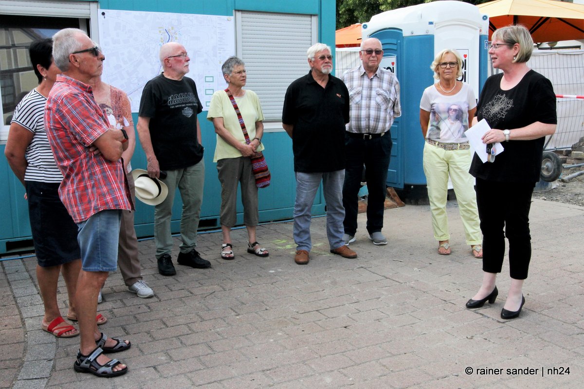 - Silke Engler im Gespräch mit den Bürgern beim Baustellentermin am Dorfplatz in Großenritte ©Foto: Rainer Sander | nh24
