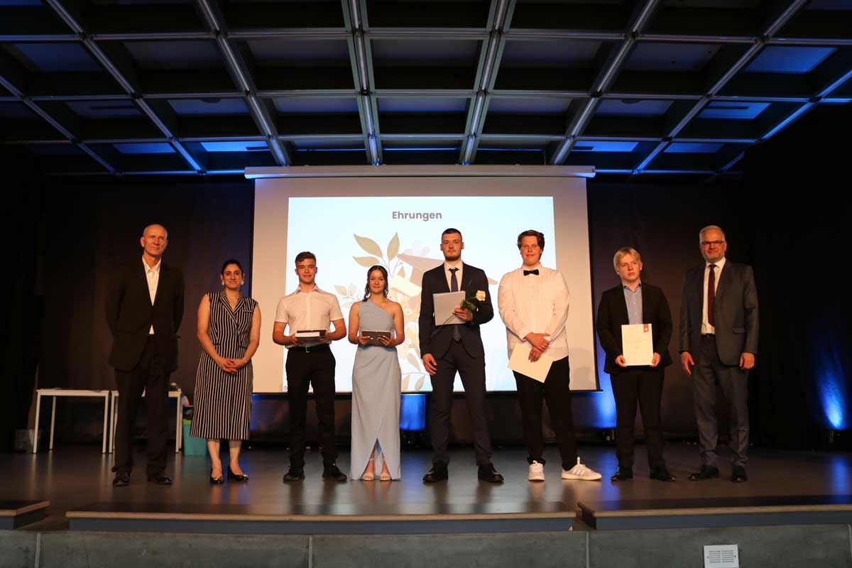 Abschließend ehrte die Schule herausragende Leistungen. Vinzenz Kleis erhielt mehrere Auszeichnungen, u. a. als Jahrgangsbester. Preise gingen auch an Julian Bialas, Arndt Mehl, Jannik Braun und Lynn Jost. (wal)