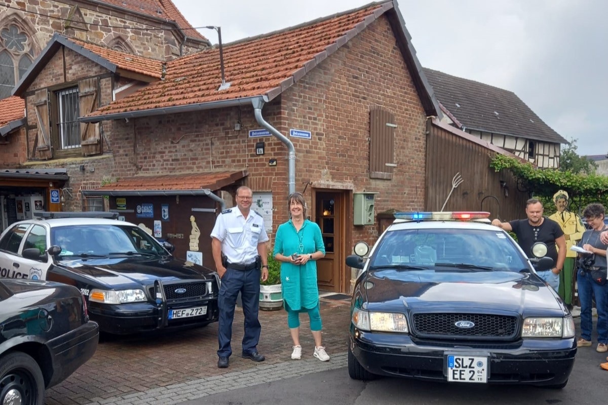 Auch echte Polizeiprominenz war vertreten: Polizeihauptkommissar Heiko Ludwig von der Polizeistation Fritzlar ließ es sich nicht nehmen, die außergewöhnlichen Gäste persönlich willkommen zu heißen. Der Kontrast zwischen deutscher Dienstuniform und amerikanischem Polizeiflair war nicht nur fotogen, sondern sorgte auch für gute Gespräche.