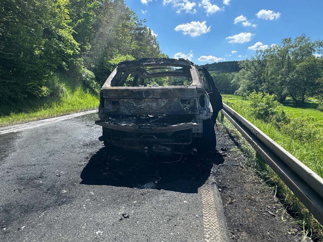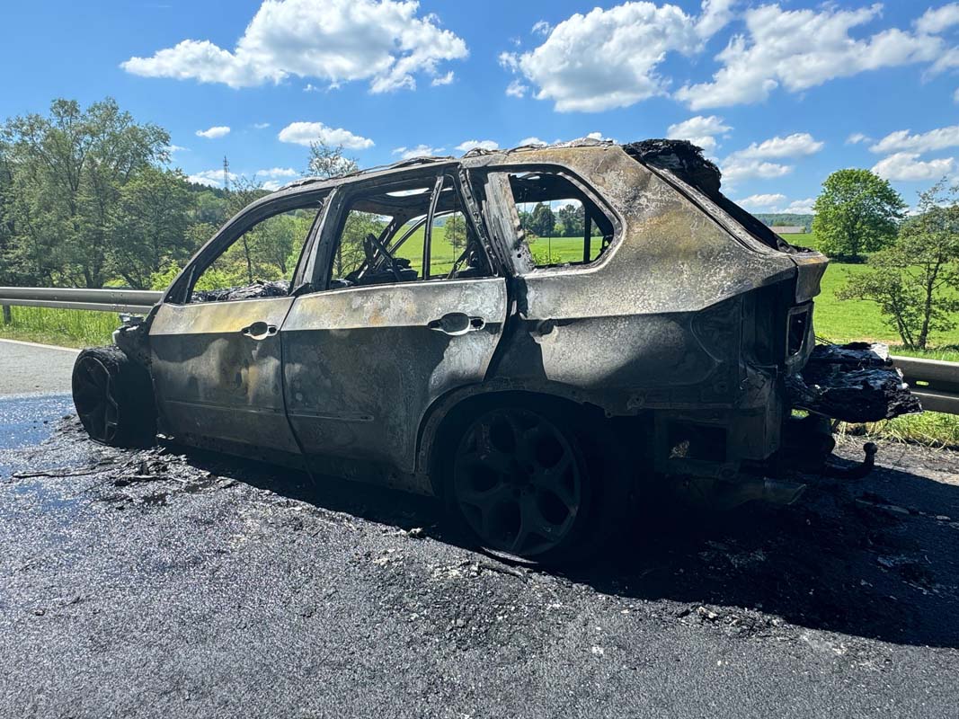 BAD WILDUNGEN. Ein BMW X5 geriet am Dienstag gegen 12:45 Uhr auf der B 485 zwischen Braunau und Bad Zwesten vermutlich aufgrund eines technischen Defekts in Brand.
