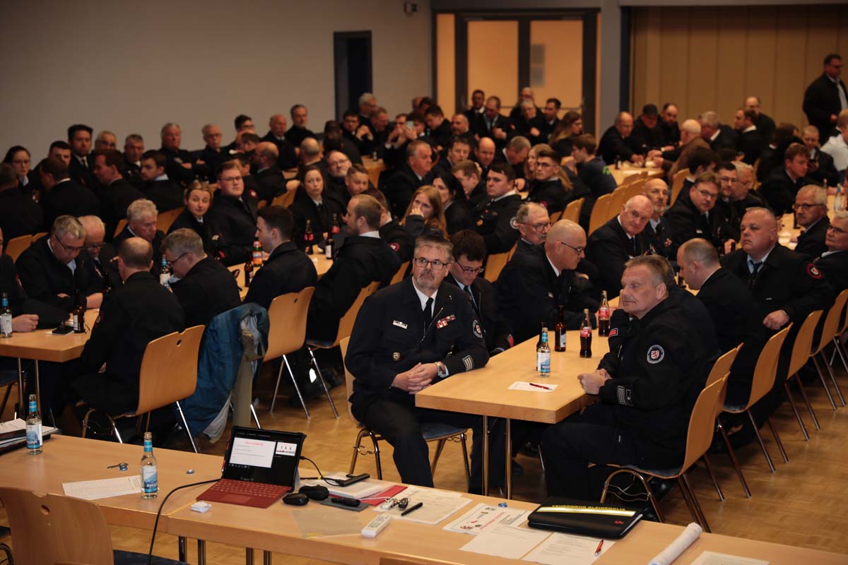 Gleich zu Beginn wird es regelmäßig ruhig im Saal, wenn sich die versammelten Feuerwehrleute von ihren Plätzen erheben und den verstorbenen Kameraden gedenken. Diesmal war es im Kreise der Feuerwehr Borken insbesondere Andre Kalb, um den die Feuerwehrleute sichtlich trauerten. Kalb war Wehrführer in Borken-Dillich und verstarb vor wenigen Monaten im Alter von 40 Jahren.