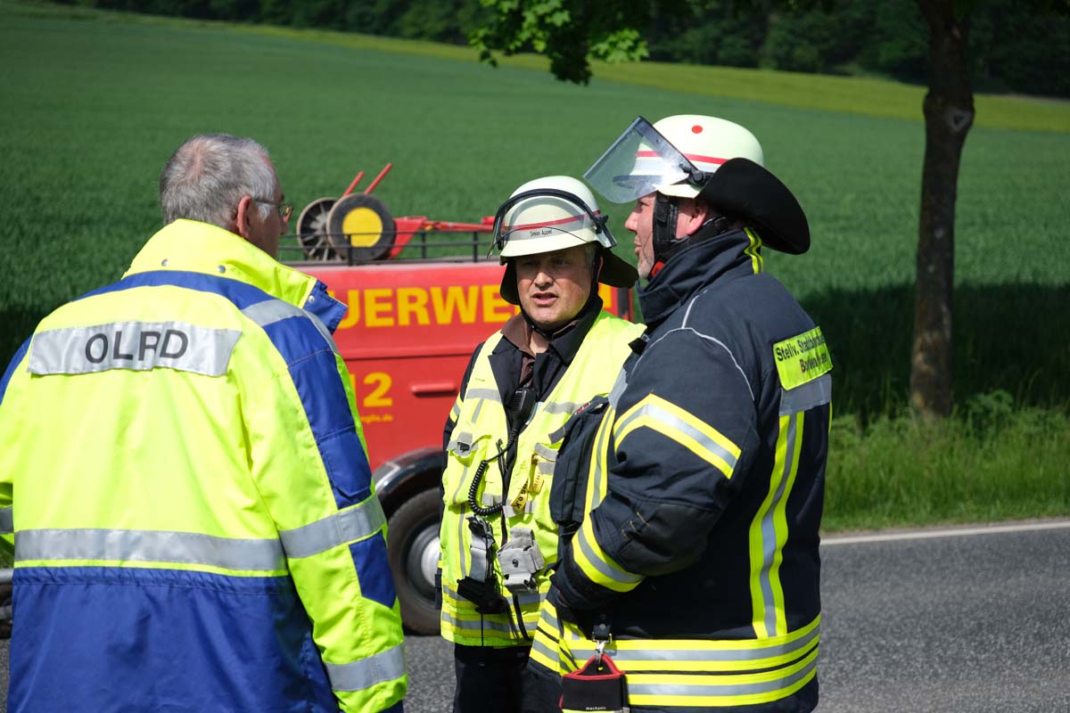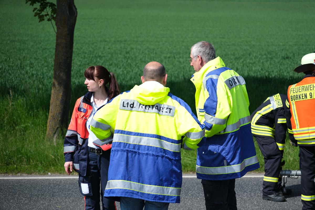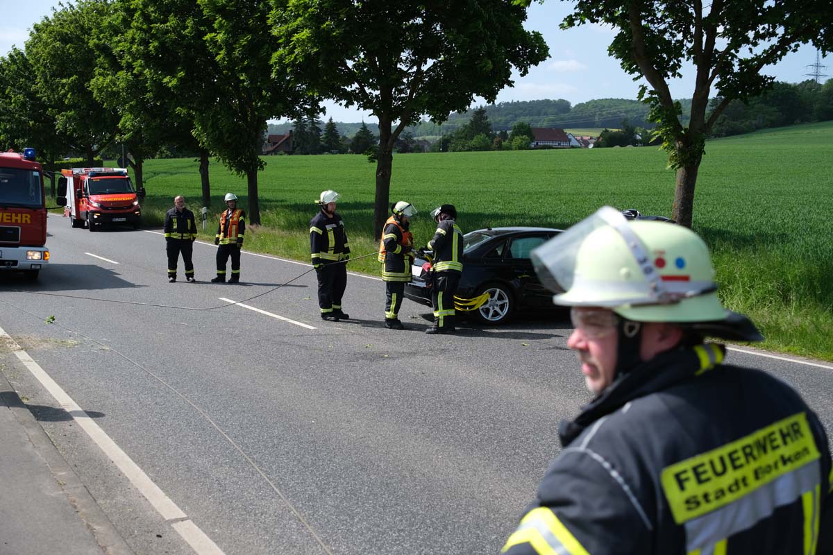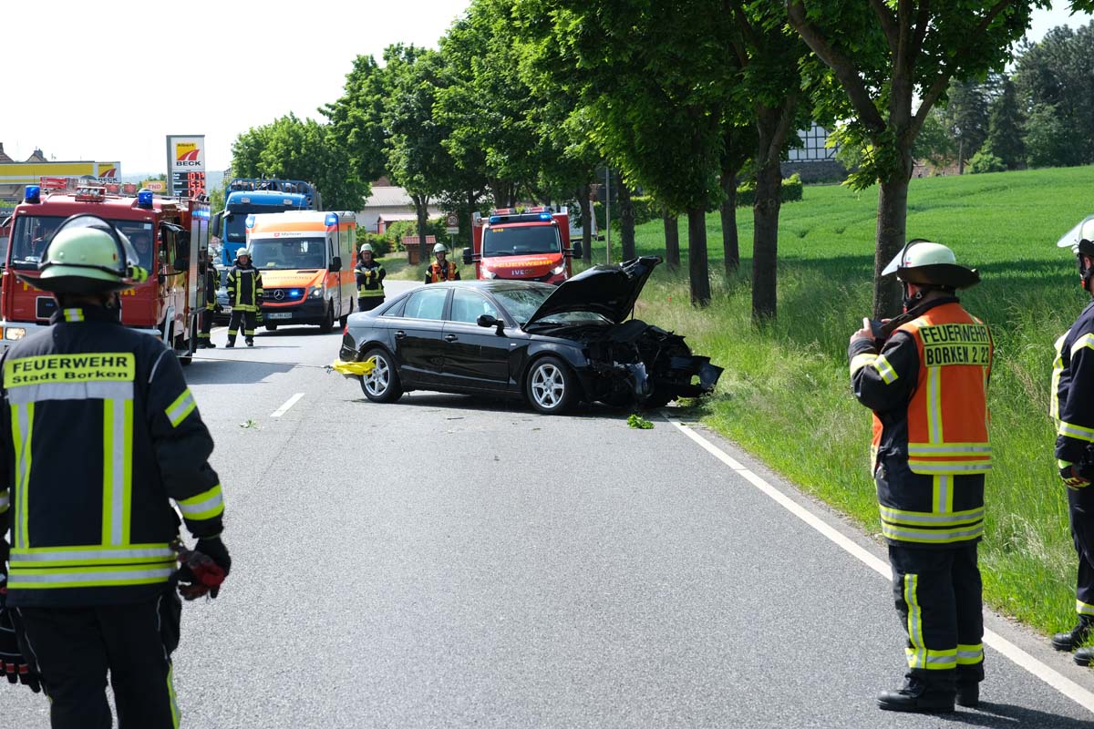 Feuerwehrleute aus Borken befreiten den 53-Jährigen, der nur eingeschlossen, und nicht, wie ursprünglich gemeldet, eingeklemmt war. Die Brandschützer sperrten zudem die B 3 während der Rettungsmaßnahmen, nahmen ausgelaufene Betriebsstoffe auf und zogen den verunfallten Pkw dann noch auf den gegenüberliegenden Gehweg. Die Einsatzleitung hatte der stellvertretende Stadtbrandinspektor Borkens, Simon Appel.