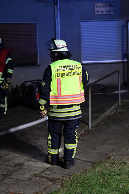Einsatzleiter Mike Kern (stellvertretender Stadtbrandinspektor) und rund 35 Feuerwehrleute aus Treysa und Ziegenhain waren im Einsatz. Zwei Trupps unter Atemschutz waren im Gebäude, die die Wohnungen absuchten und das Feuer löschten. Am Ende der Maßnahmen wurde das Haus noch belüftet und vom Brandrauch befreit.