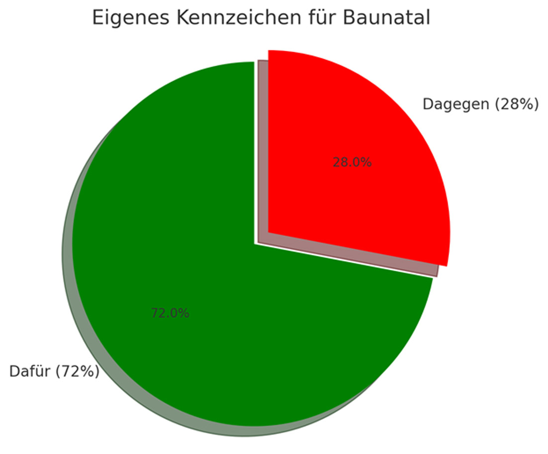 Wie geht es weiter? Die Mehrheit der Teilnehmenden spricht sich für ein eigenes Kennzeichen aus. Die Stadtverordnetenversammlung, so die Pressemitteilung, wird sich mit den Ergebnissen befassen und über das weitere Vorgehen entscheiden. Ein Antrag zur Änderung der sogenannten Fahrzeugzulassungs-Verordnung müsste über das Hessische Verkehrsministerium an die Bundesbehörde gestellt werden. Die Stadt Baunatal würde sich anderen befürwortenden Kommunen in einem gemeinsamen Antrag anschließen.