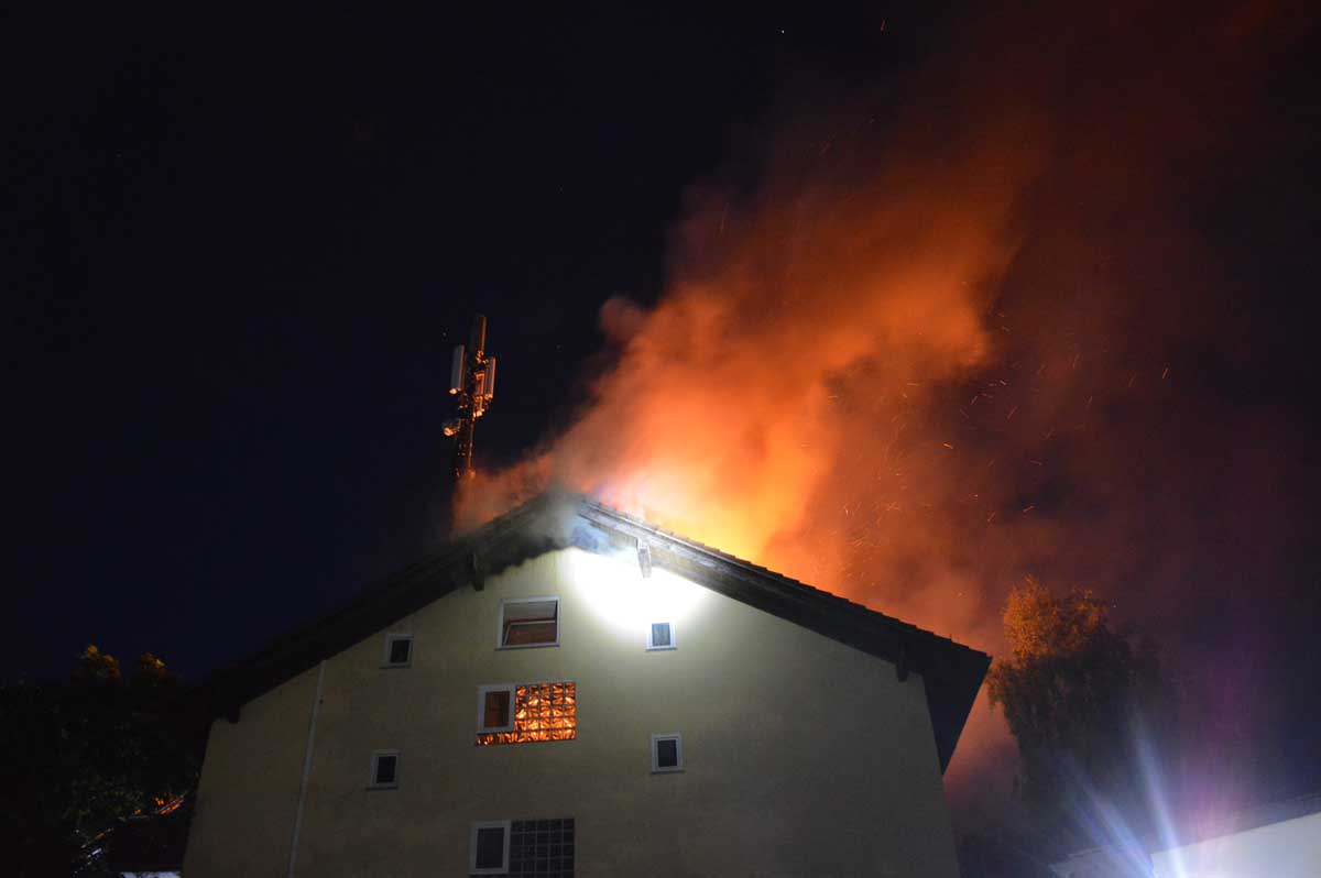 Der Dachstuhl wurde durch das Feuer weitgehend zerstört. Die Nachlöscharbeiten dauerten bis in die frühen Morgenstunden.