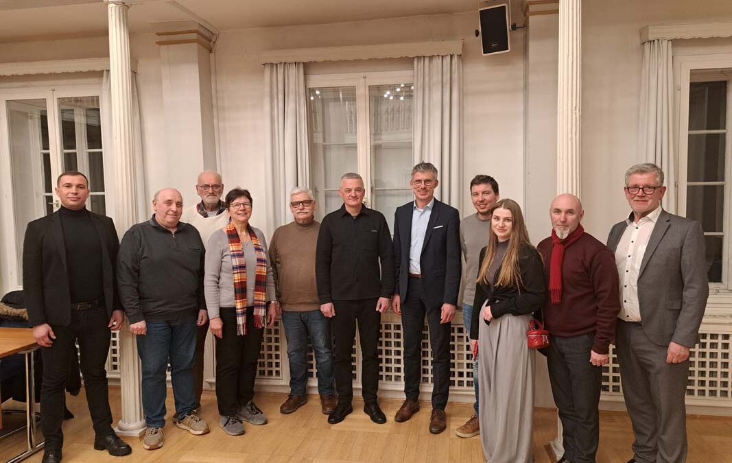 Morschyns stellvertretender Bürgermeister Volodymyr Levkovych; Stadtrat Gerhard Reidt, Stadtrat Dieter Dötenbier, Stadträtin Margot Schick, Stadtrat Bernd Rösch, Morschyns Bürgermeister Ruslan Ilnytskyi, Bürgermeister Tobias Kreuter, Stadtrat Timo Beckmann, Dolmetscherin Mariia Levkovych, Ratssekretär Mykola Voievoda, erster Stadtrat Lothar Ditter. (wal)