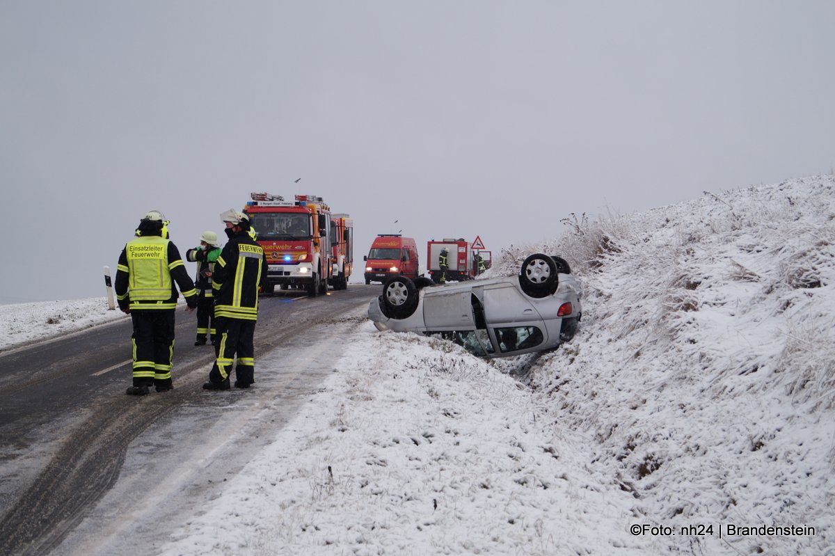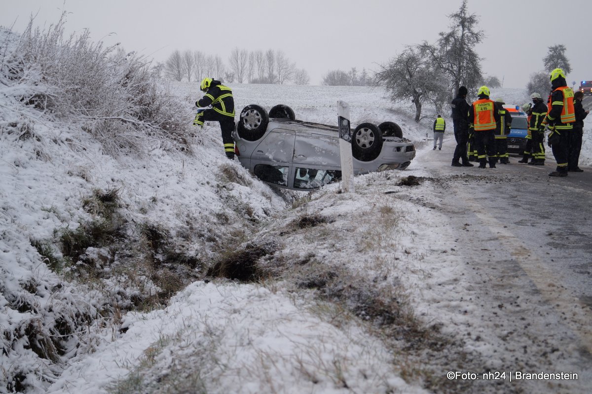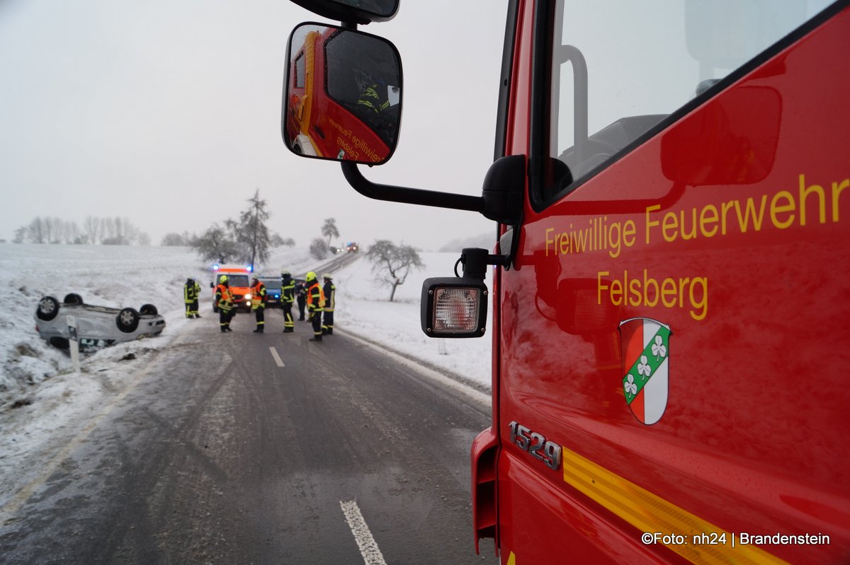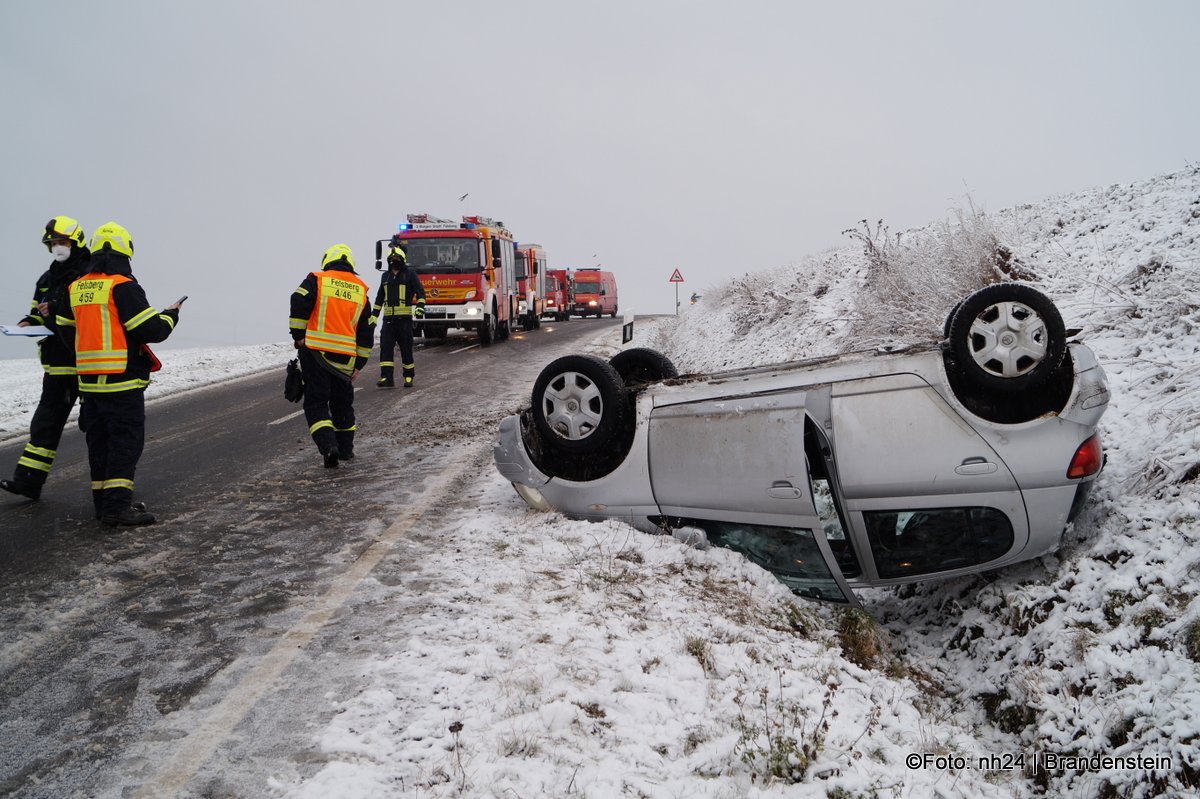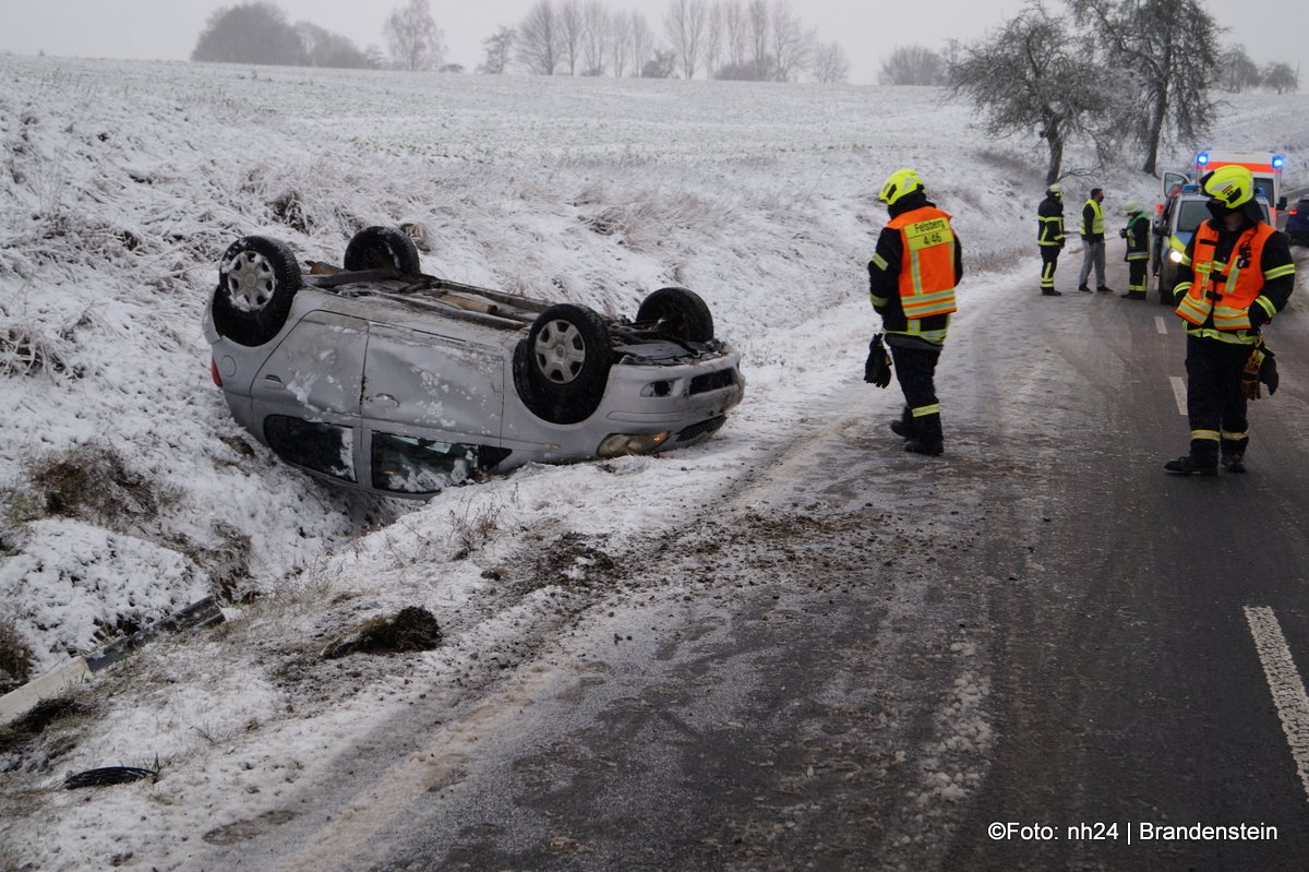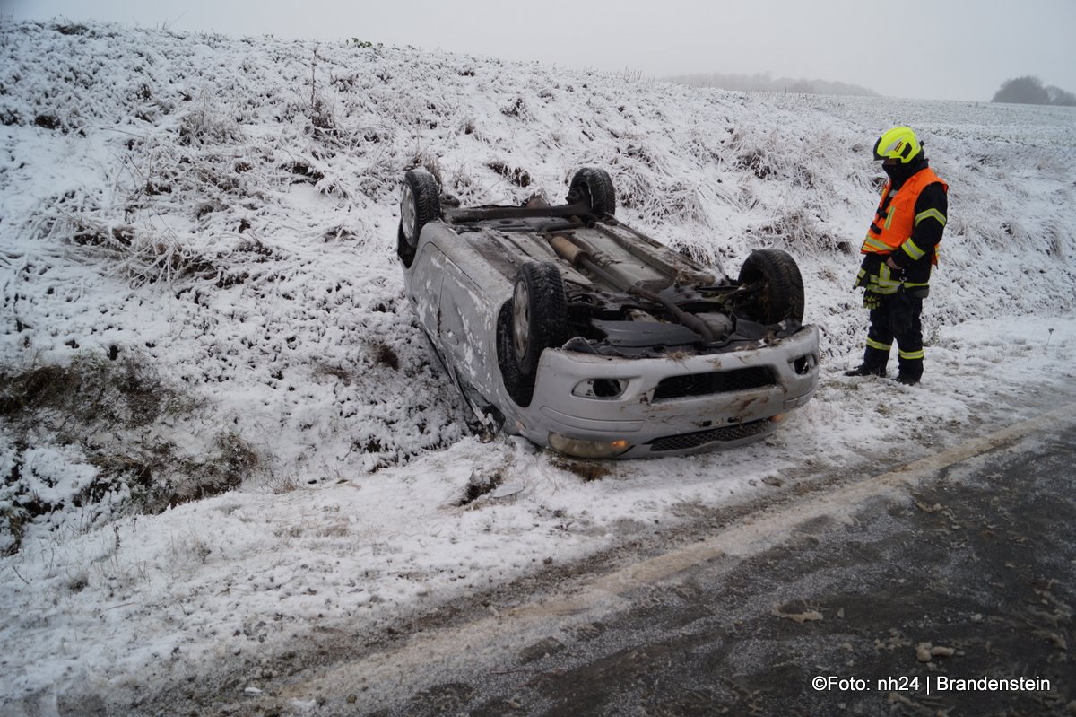 BÖDDIGER/DEUTE. In der Gemarkung Felsberg-Böddiger, auf der Kreisstraße in Richtung Deute, hat sich am Freitag gegen 8:40 Uhr ein Pkw überschlagen. Die Feuerwehr wurde zu einem „Verkehrsunfall mit eingeklemmter Person“ alarmiert, was sich vor Ort nicht bestätigte. Die 26 Jahre alte Fahrerin aus Felsberg erlitt eher leichte Verletzungen.