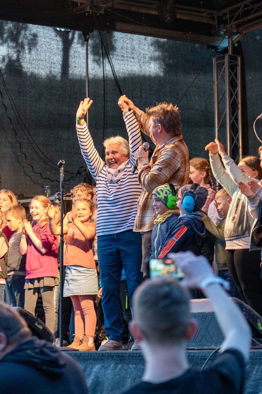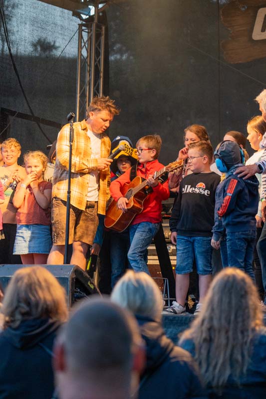 Besondere Gänsehautmomente gab es beim Lied „Alte Freunde“, das viele Fans zu Tränen rührte. Der neue Hit „Gisela“ entwickelte sich schnell zum Ohrwurm und wurde lauthals mitgesungen. Ein Highlight war auch, als alle Kinder aus dem Publikum auf die Bühne geholt wurden, um gemeinsam das Lied „Dorfkind“ zu singen. Ein kleiner Junge hatte sogar das Glück, mit einer Gitarre ausgestattet, zusammen mit der Band das Lied „Wonderwall“ zu spielen – ein Moment, der sicherlich in die Geschichte des Dorfes eingehen wird.