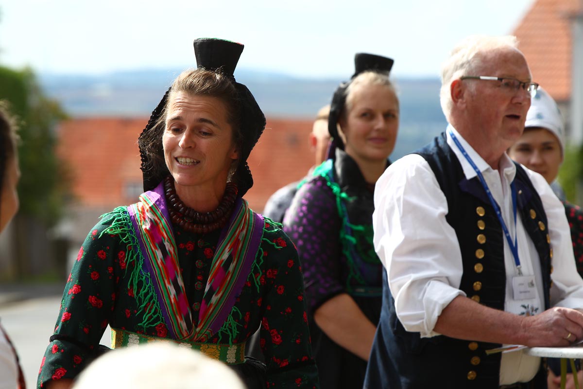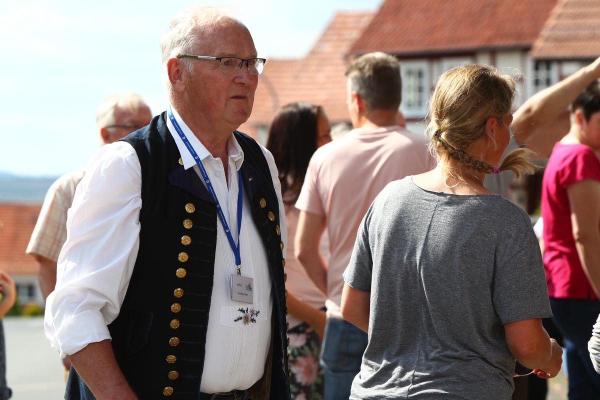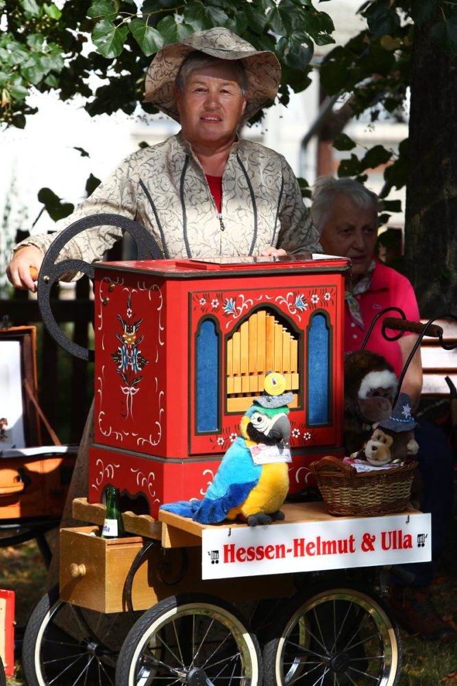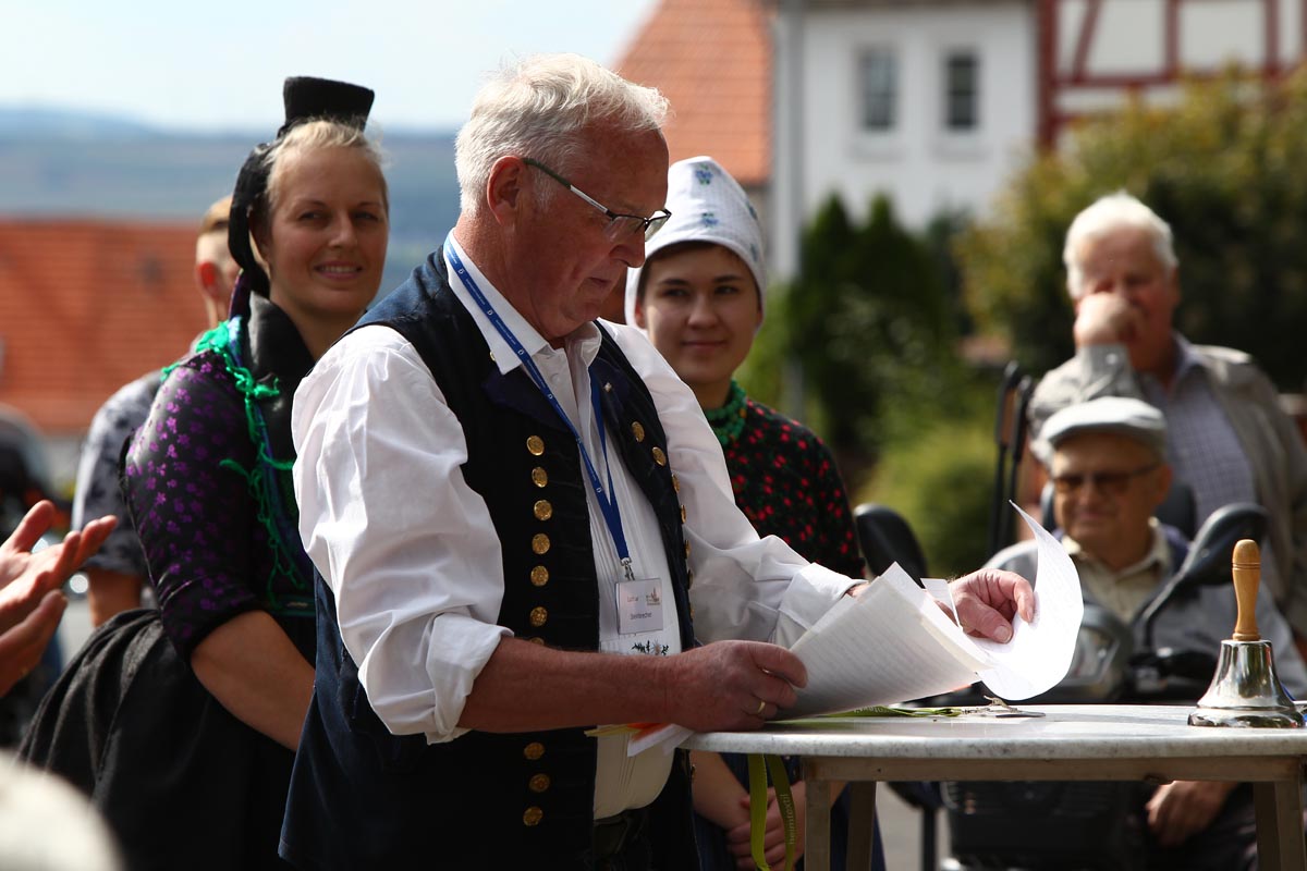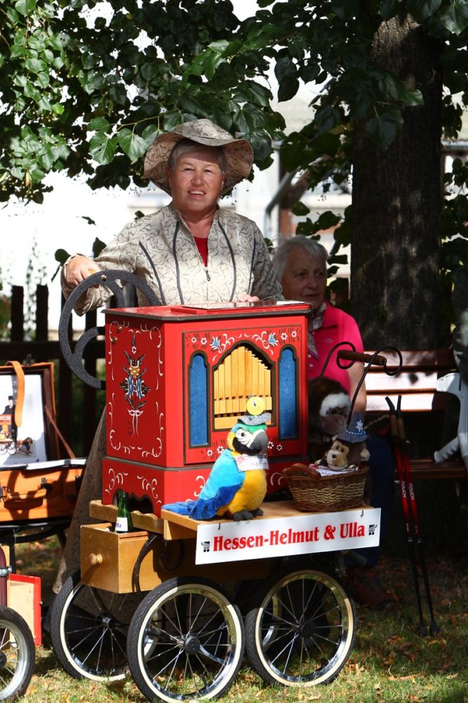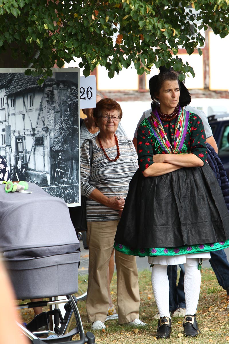 Am Sonntagmittag hat Steinbrecher die Ausstellung mit einer Rede auf dem Tanzplatz eröffnet. Musikalisch untermalt wurde die Veranstaltung, an der rund 200 Menschen teilnahmen, von Hessen Helmut und seiner Ehefrau Ulla, die gemeinsam die Drehorgel spielten. Zudem bekamen die Besucher einen kurzen Einblick in die Bedeutung der verschiedenen Farben und Bänder der Schwälmer Tracht. So trugen Frauen ab der Hochzeit Grün und die Männer ab der Heirat blaue Westen.