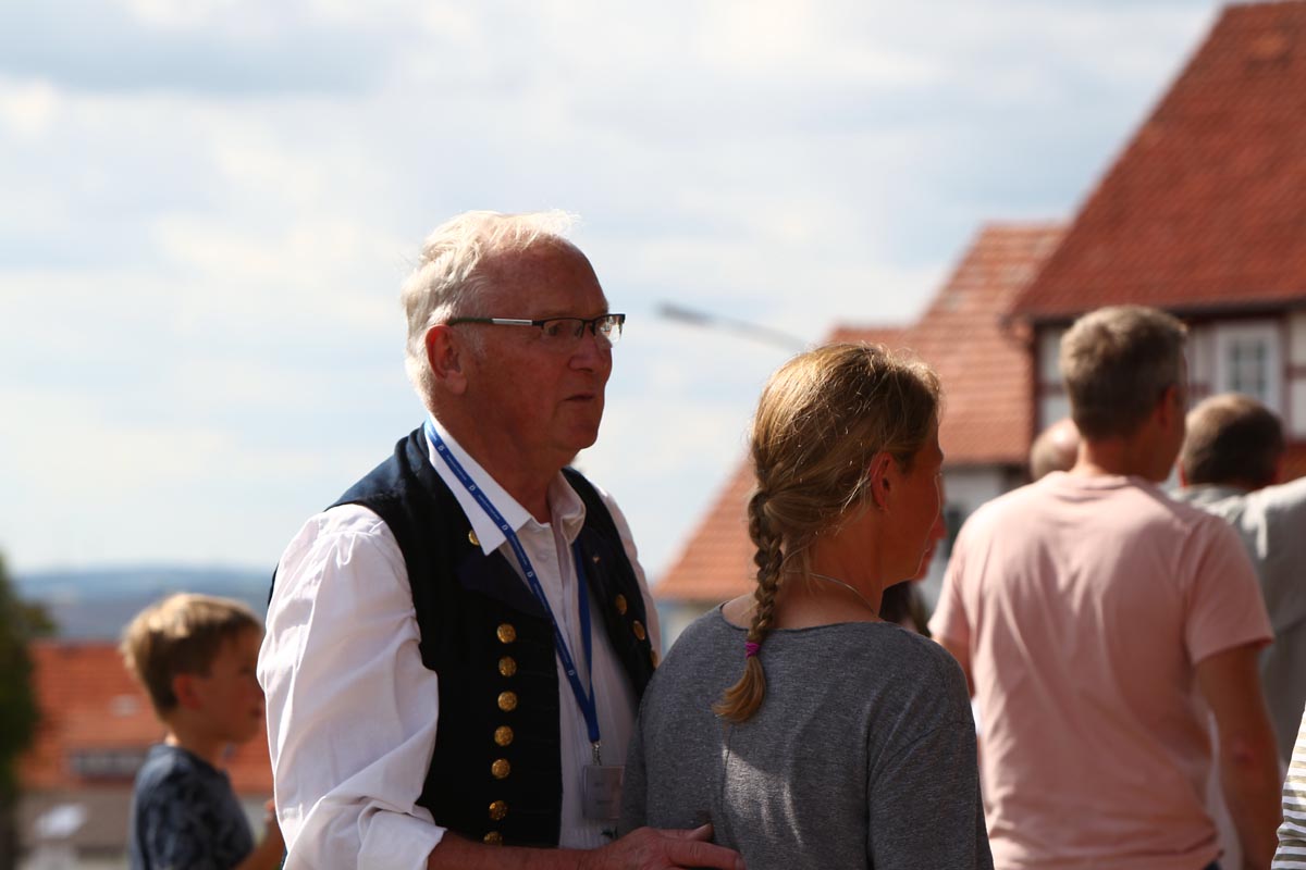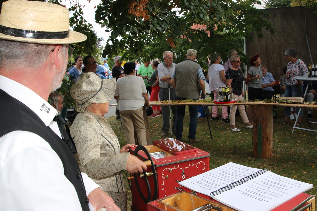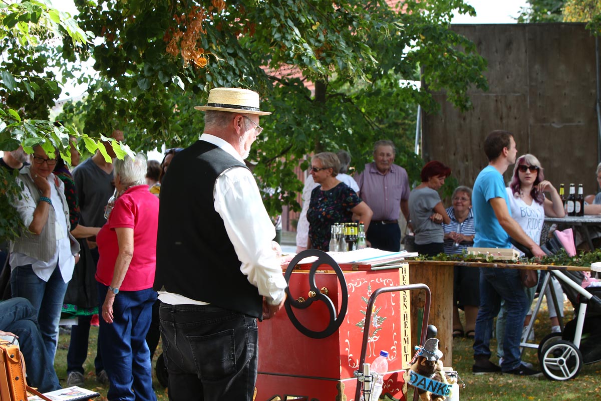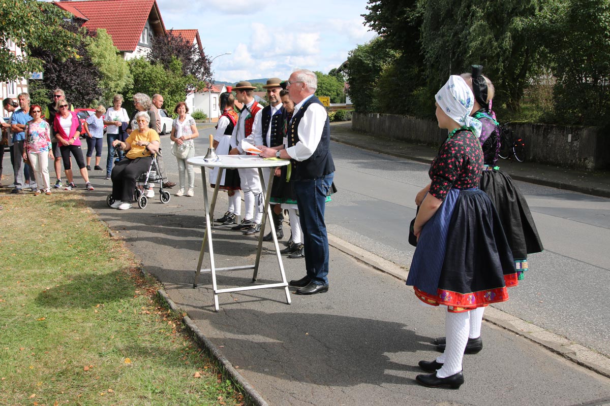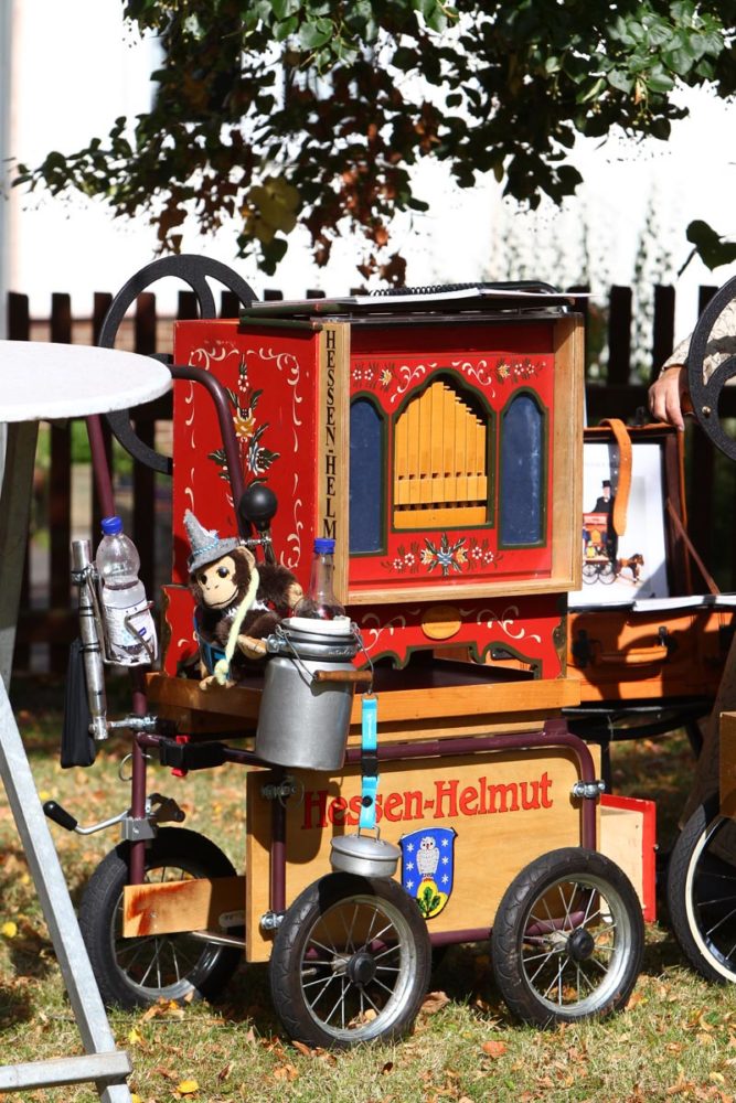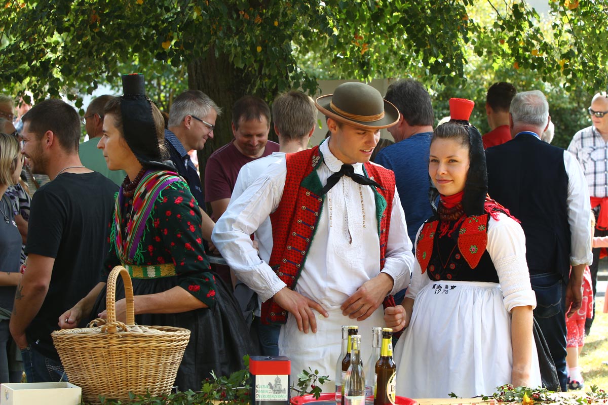 Am Sonntagmittag hat Steinbrecher die Ausstellung mit einer Rede auf dem Tanzplatz eröffnet. Musikalisch untermalt wurde die Veranstaltung, an der rund 200 Menschen teilnahmen, von Hessen Helmut und seiner Ehefrau Ulla, die gemeinsam die Drehorgel spielten. Zudem bekamen die Besucher einen kurzen Einblick in die Bedeutung der verschiedenen Farben und Bänder der Schwälmer Tracht. So trugen Frauen ab der Hochzeit Grün und die Männer ab der Heirat blaue Westen.