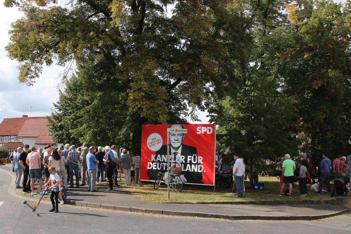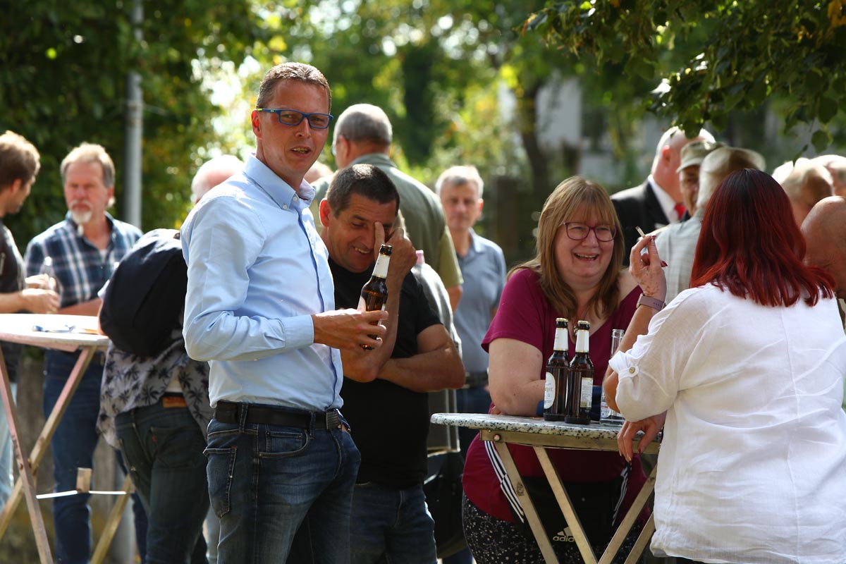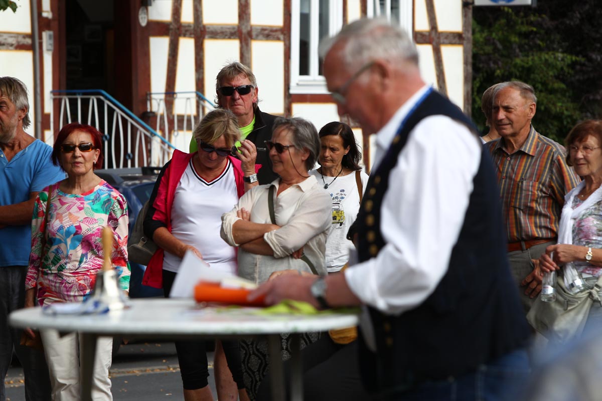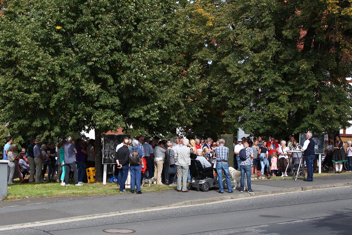 Im Anschluss an die Eröffnung liefen die Besucher in geführten Gruppen viele Exponate der Ausstellung ab. Anschließend gab es Kaffee und Kuchen auf dem Platz gegenüber dem Backhaus.