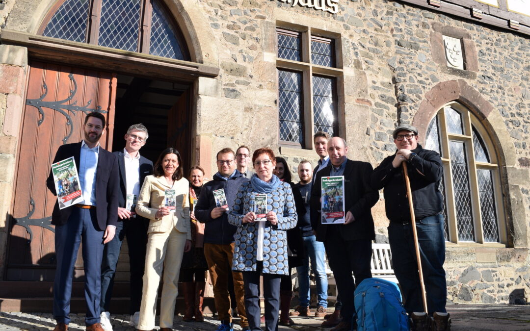 Beitragsfoto: Der Vorstand des Tourismusservice Rotkäppchenland freut sich mit der Geschäftsführerin über die neue Wanderbroschüre. V.l. Dr. Philipp Rottwilm, Neuental; Tobias Kreuter Schwalmstadt; Tatjana Grau-Becker, Schwalm-Eder-Kreis; Elke Lepper Oberaula; Jörg Peters, Landkreis Hersfeld-Rotenburg; Fritz-Otto Wilhelm, Frielendorf; Heidrun Englisch, Rotkäppchenland; Katrin Anders, Naturpark Knüll; Moritz Zinn, Wallenstein; Dr. Nico Ritz, Homberg(Efze); Gerhardt Reidt, Schwalmstadt; Matthias Hucke, Homberg(Efze) © Foto: Uwe Dittmer, Stadt Homberg(Efze)|nh