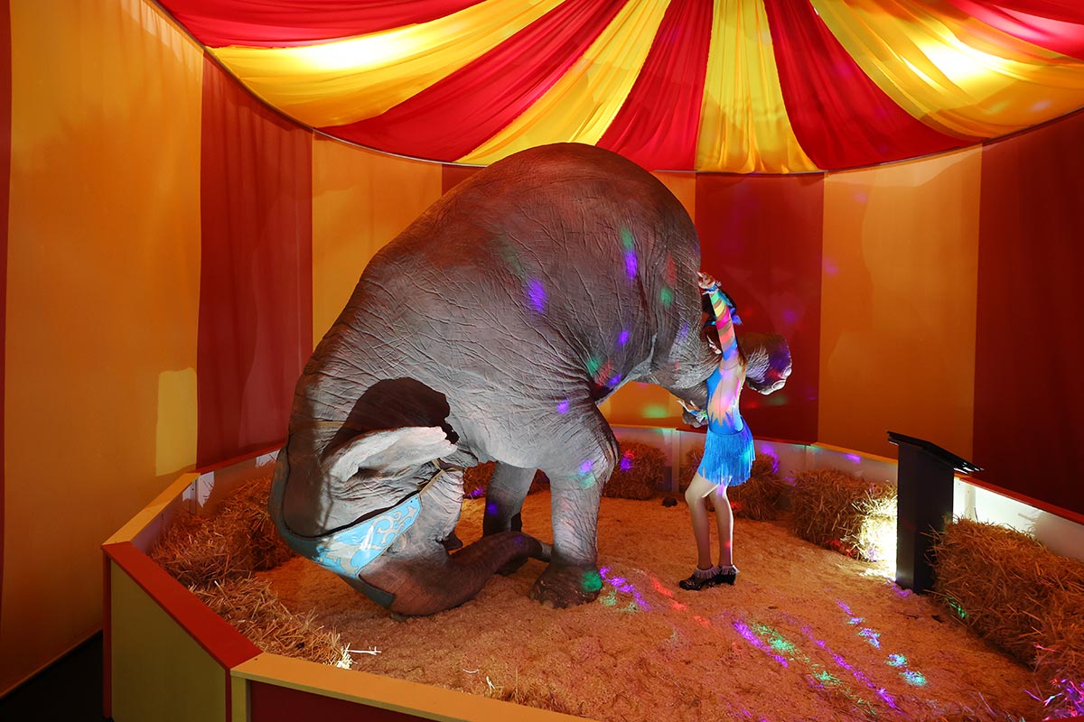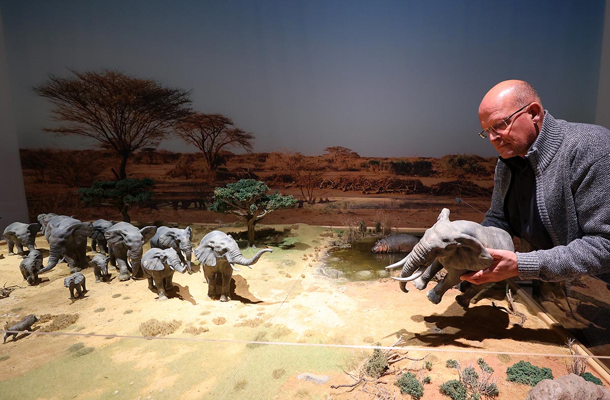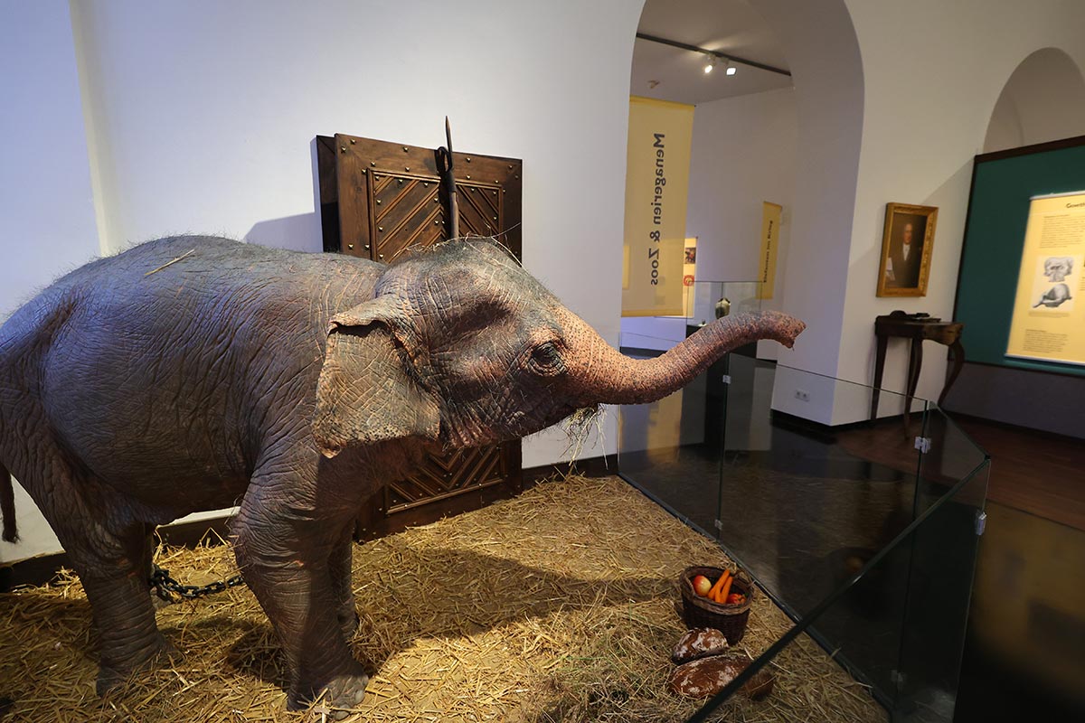 Viele der ausgestellten Objekte, wie ausgewachsene Mammuts, Zirkuselefanten und ausgestorbene Rüsseltiere, sind in den detailreich gebauten Inszenierungen zu entdecken. Unter den eigens für die Ausstellung hergestellten Modellen ist auch ein „Liebling des Volkes“ des 18. Jahrhunderts: der Kasseler Goethe-Elefant. Er galt seinerzeit als das Juwel in der Menagerie des Landgrafen Friedrich II. und kam später zu wissenschaftlichem Ruhm. Wie alle Modelle wurde auch er liebevoll in Szene gesetzt.
