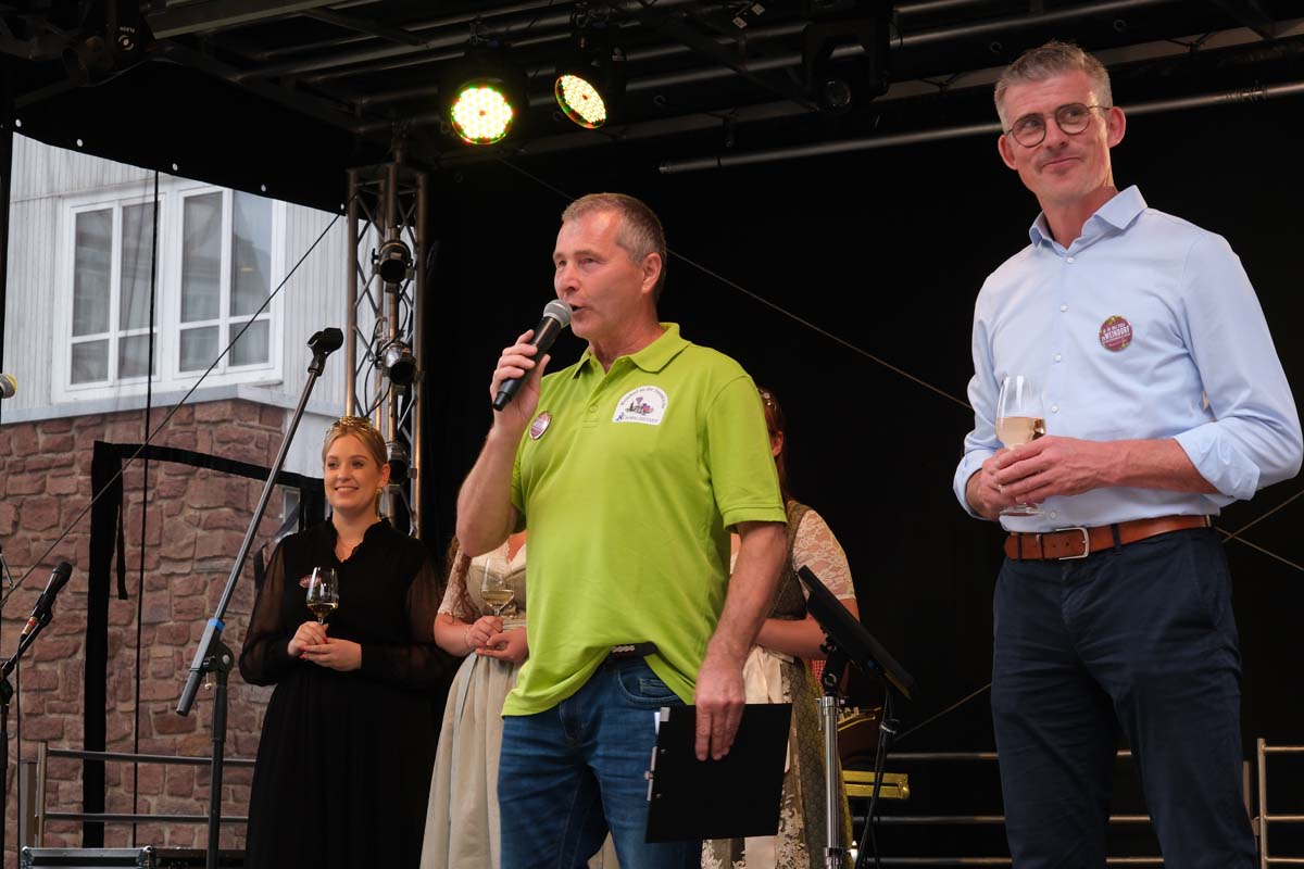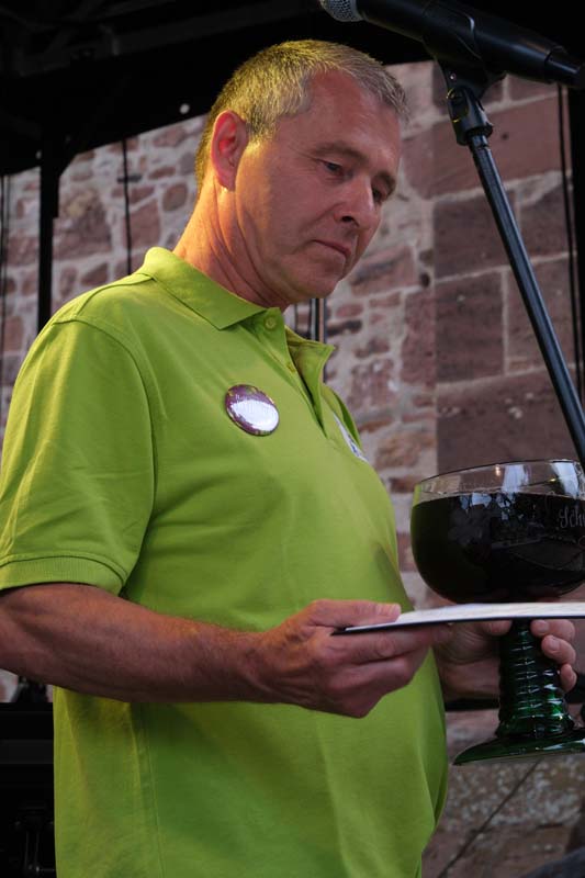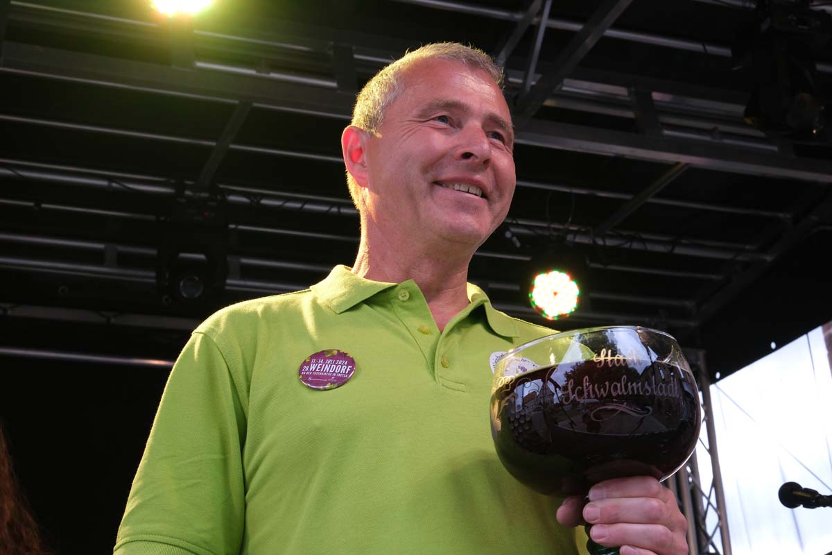 Jochen Böttger, der viele Jahre (16-mal) bei der Stadtverwaltung für die Organisation und Durchführung der Veranstaltung an der Totenkirche verantwortlich war, geht in den Ruhestand und wird das Glas im kommenden Jahr an seinen Nachfolger weiterreichen. „Du bist eh den ganzen Abend hier, trinkst und verkaufst Wein, dann kannst Du das Ganze auch organisieren“, soll Ex-Bürgermeister Wilhelm Kröll (†) gesagt haben, als er ihm das Weindorf übertrug, so der jetzige Schwalmstädter Bürgermeister Tobias Kreuter am Donnerstagabend.