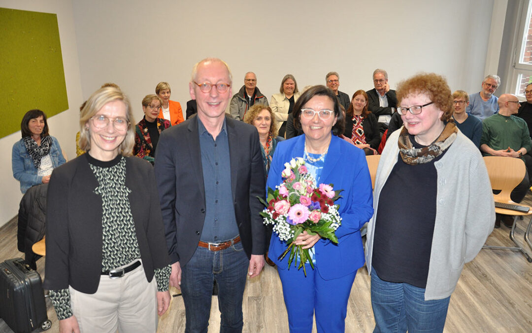 Nach der Antrittsvorlesung gab es Blumen: Auf dem Bild (von links) Prodekanin Prof.in Dr.in Susanne Gerner, EHD-Präsident Prof. Dr. Uwe Becker, Prof.in Dr.in Gotlind Ulshöfer und Prof.in Dr.in Dorothea Rzepka (EHD). (wal / pm)