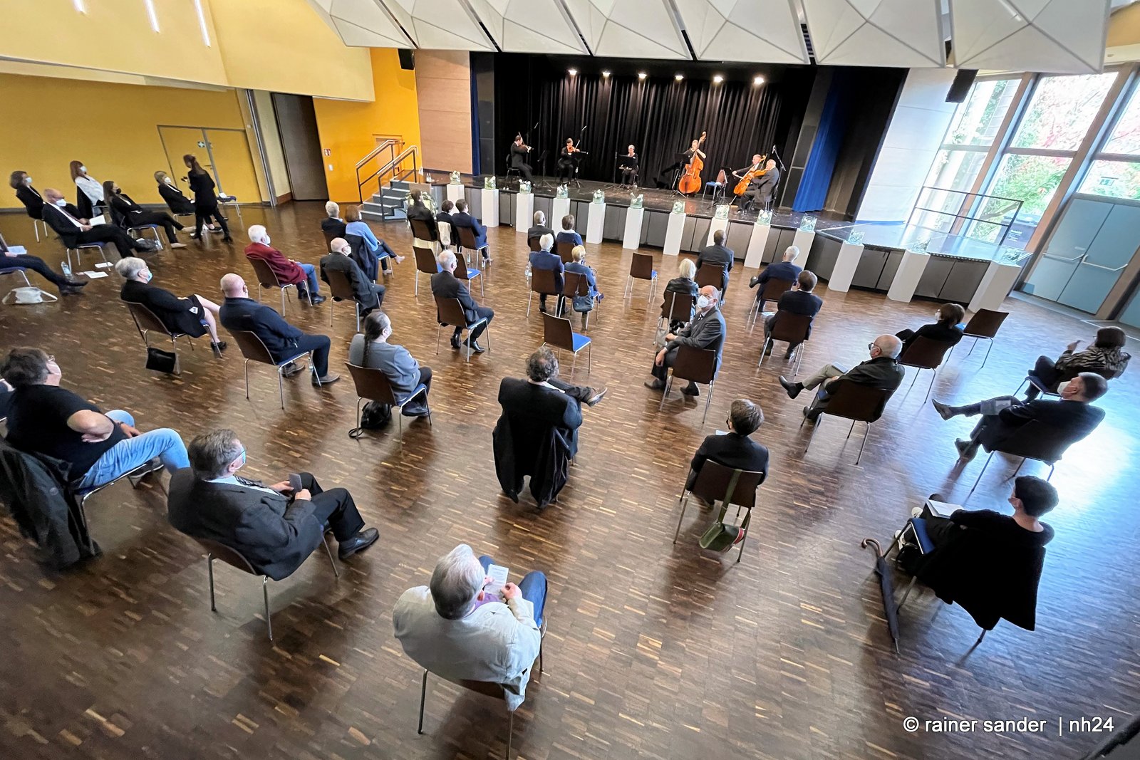 Eine Gedenkfeier, umrahmt von Musik des Staatsorchesters Kassel, gegen den Gewöhnungseffekt und in Erinnerung an eine unterschätzte Wahrheit: aus Worten können Taten werden…!“ Dr. Walter Lübcke hat an diesem Ort Position bezogen und letztlich hier für immer diesen Platz positiv besetzt. Wenn Schüsse fallen, nachdem Worte fallen, werden diese Worte stets zur ewigen Mahnung. (Rainer Sander)