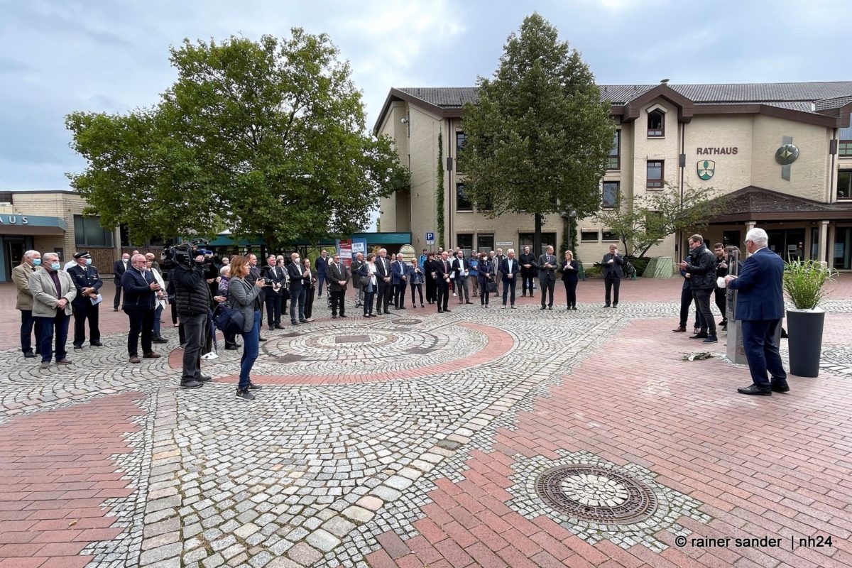 Sehr bewegende Worte fand Lohfeldens Pfarrer Klaus-Dieter Inerle, der klarstellte, dass man Menschenverachtung und Gewalt nicht mehr bekämpft, wenn sie schon um sich gegriffen haben. Er drückte Bewunderung aus für die Familie von Dr. Walter Lübcke, die sich heute wünschen könnte, nicht erinnert zu werden. Zwei Jahre danach sollte man aber nicht wegsehen, wenngleich die Suche nach Antworten letztlich nicht befriedigt werden wird. Vielleicht, so Inerle, wird der Platz Zukünftig zu einem Ort der Menschlichkeit und Toleranz. „Wir haben nicht alles geschafft, aber vieles. Engagement sei notwendig, damit die Gesellschaft ihr menschliches Gesicht zeigen kann.