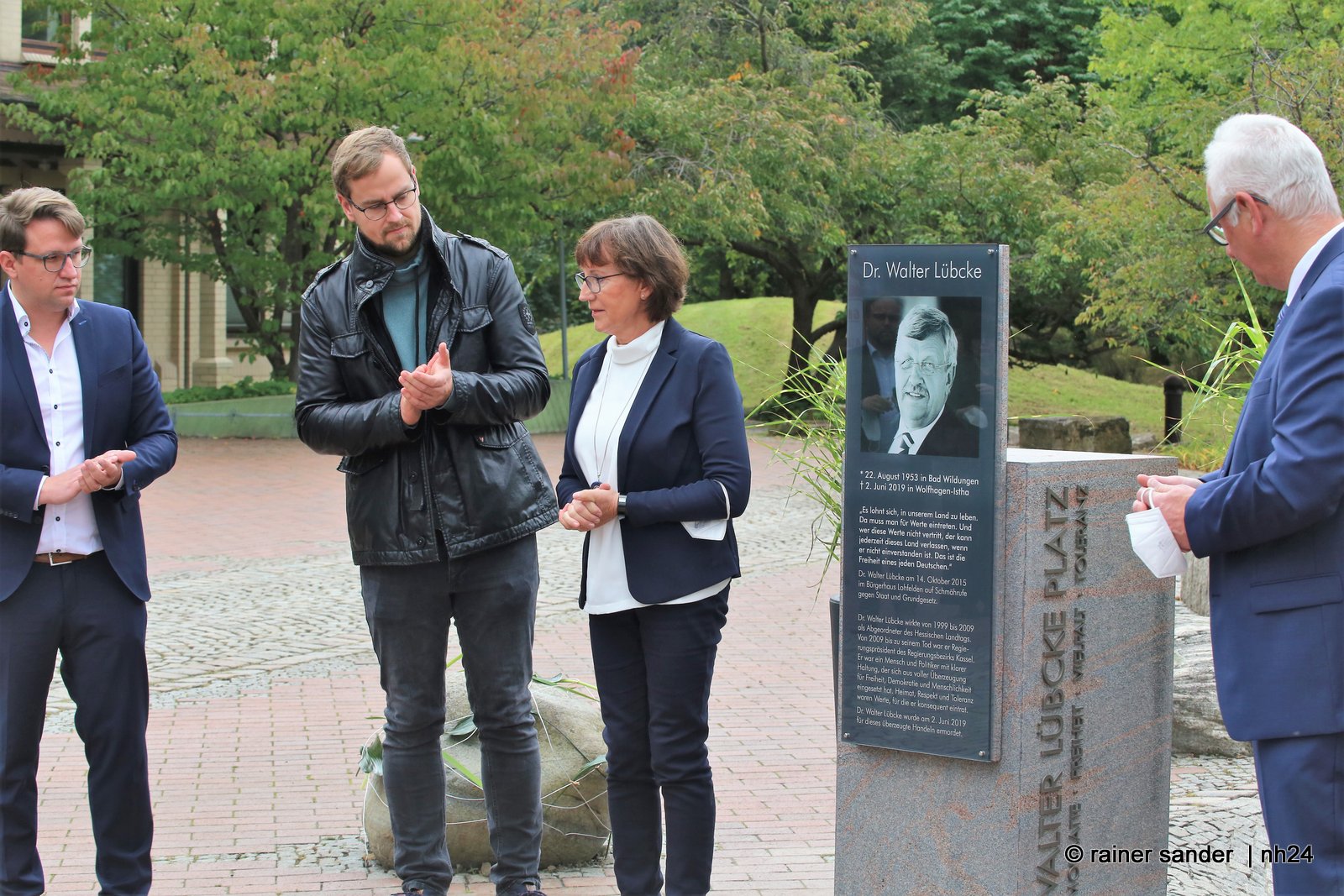 Die Tafel erinnert daran, dass es sich lohnt in diesem Land zu leben, für das sich der Ermordete stets eingesetzt und sich vom Schicksal anderer hat anrühren lassen. Die Leben der Familie sind weitergegangen und Irmgard Braun-Lübcke, die Witwe von Walter Lübcke, stellte bei der Enthüllung der Gedenktafel klar, dass niemand drumherum kommt, sich mit Beweggründen und Ursachen für die Tat auseinanderzusetzen. Die Tat sei eine Mahnung, um für die Demokratie zu streiten und sich gegen Attacken und Ausgrenzung einzusetzen.