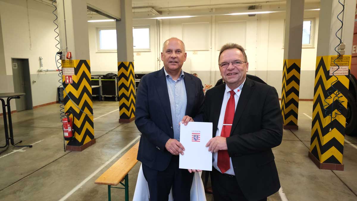 In Homberg (Efze) übergab Innenminister Roman Poseck drei Bescheide: