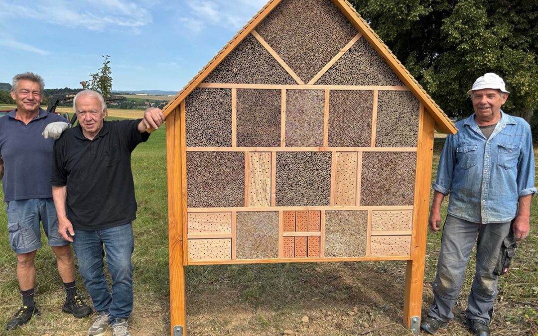 WILLINGSHAUSEN-MERZHAUSEN. Am Rand des Natur- und Kulturlandschaftslehrpfads Merzhausen wurde kürzlich ein weiteres Wildbienenhotel errichtet. Das nunmehr dritte Modell dieser Art ergänzt die bereits gut belegten bestehenden Standorte. Es steht auf der Merzhäuser Streuobstwiese, die im Jahr 2024 mit 60 hochstämmigen Apfel- und Birnbäumen neu angelegt wurde.