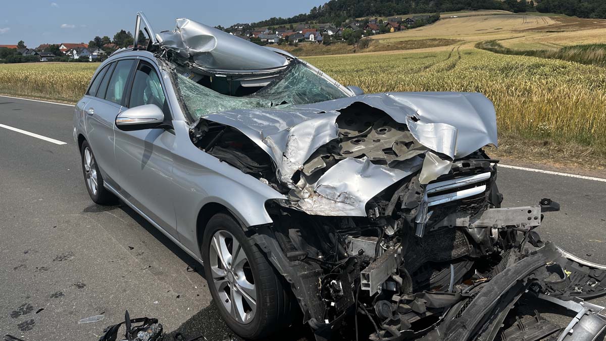 Ersten Erkenntnissen zur Folge befuhr ein Treckergespann die Landstraße von Wellen in Richtung Fritzlar. Direkt dahinter fuhren zwei weitere Verkehrsteilnehmer. Nur wenige hundert Meter hinter dem Ortsschild beabsichtigte der Fahrer des Schleppergespanns nach links in einen Feldweg einzubiegen. Zeitgleich setzte der hintere der beiden PKW zum Überholen an. Offenbar erkannte der 53-jährige Mercedesfahrer das Vorhaben des Landwirtes nicht und krachte nahezu ungebremst unter den Anhänger.