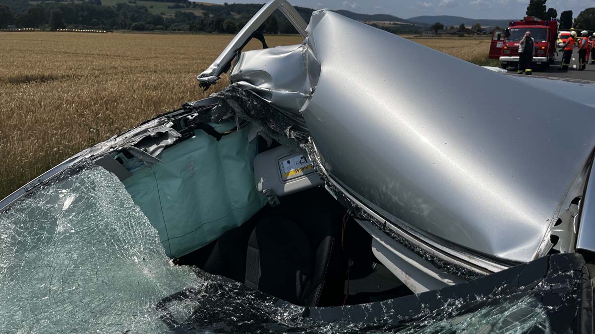 Dabei wurde das Dach des PKW beinahe bis zur Kopfstütze des Beifahrersitzes aufgerissen. Der Fahrer und der auf der Beifahrerseite sitzende zwölfjährige Sohn wurden durch den Aufprall schwer verletzt und kamen in ein nahegelegenes Krankenhaus. Auch die Mutter, die im Font des Fahrzeuges saß, wurde ebenfalls schwer verletzt und musste mit dem Rettungshubschrauber Christoph 25 (Siegen) in ein Krankenhaus nach Kassel geflogen werden. Der Fahrer des Schleppergespanns blieb nahezu unverletzt und wurde vorsorglich in eineKrankenhaus gebracht.