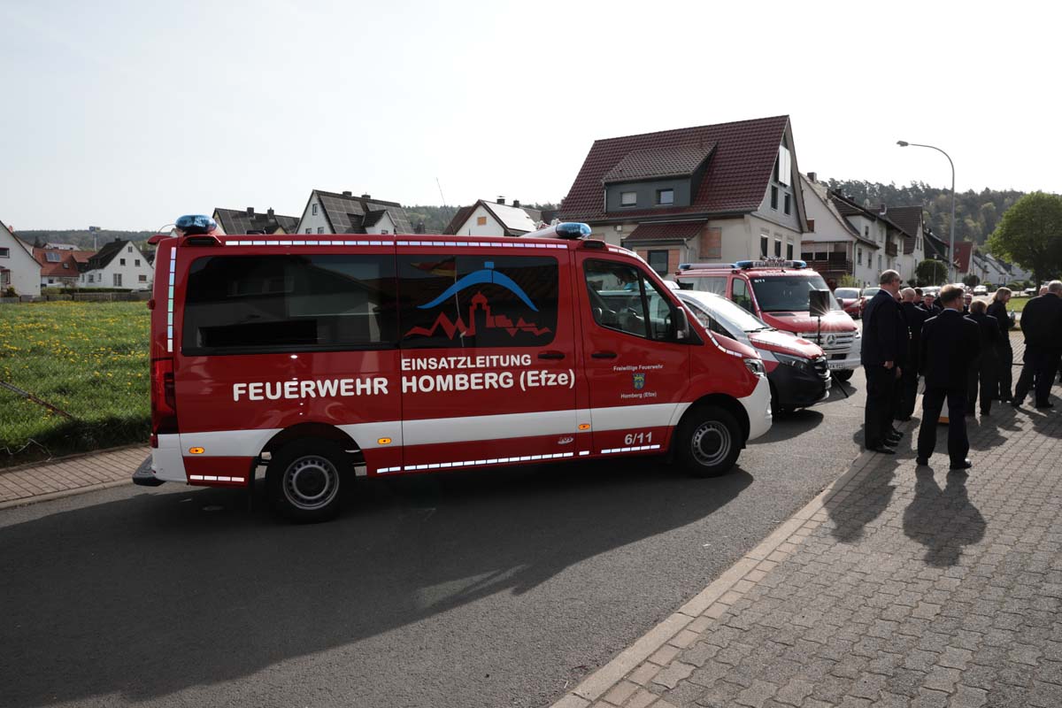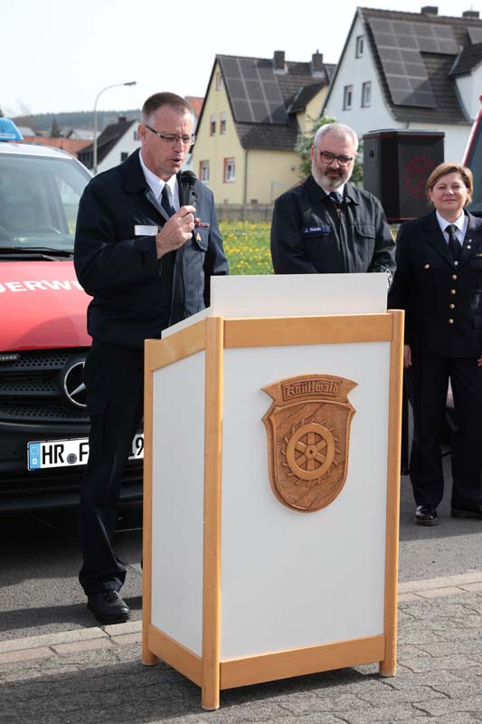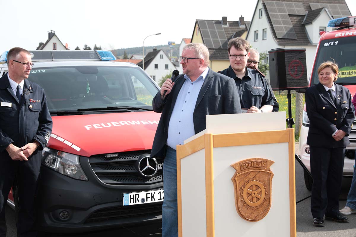Hombergs Stadtbrandinspektor Jörg Rohde betonte die Wichtigkeit eines modernen Einsatzleitwagens. So können beispielsweise bei Großschadensereignissen die beiden Fahrzeuge untereinander und zusätzlich noch mit dem Einsatzleitwagen 2 des Landkreises gekoppelt werden. „Wir hoffen, dass es nie sein muss. Aber wenn es sein muss, wird es gut funktionieren“, so Rohde. Der Stadtbrandinspektor bedankte sich bei den Kameraden und bei der Gemeinde Knüllwald für die gute Zusammenarbeit. Es ist nicht nur das Geld, das eingespart wird, es ist auch der zeitliche Aufwand, der aufgeteilt werden kann.