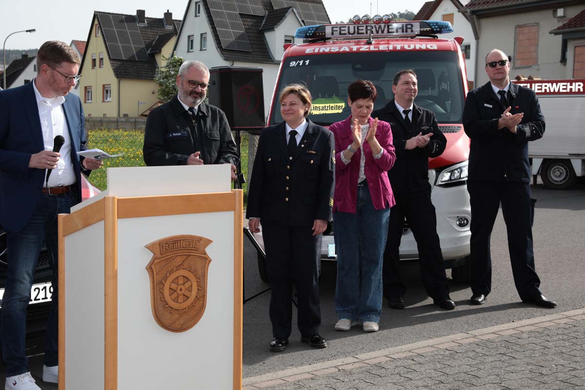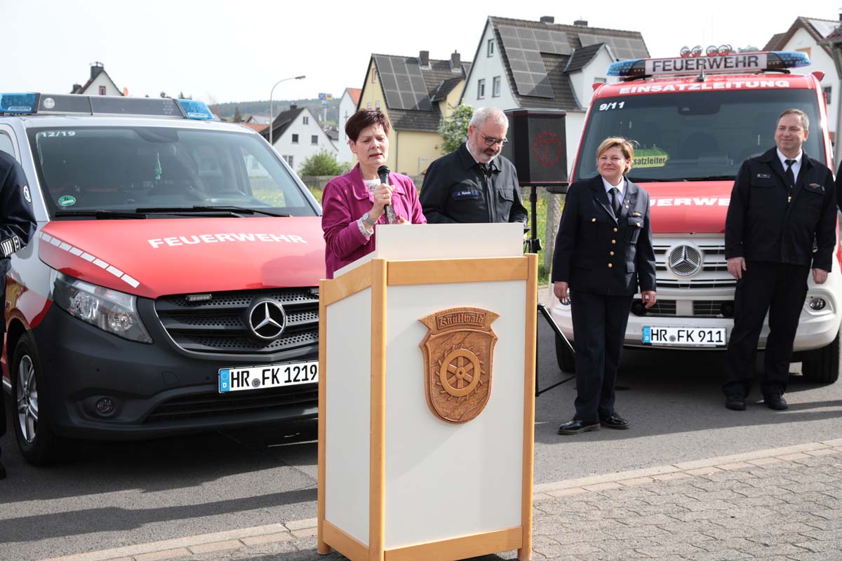 Kreisbrandinspektorin Tanja Dittmar ging auf die Förderung des Landkreises aus Mitteln des Kreisausgleichsstocks des Schwalm-Eder-Kreises ein, aus dessen Budget überwiegend finanzschwache Kommunen gefördert werden können. Für den Einsatzleitwagen der Gemeinde Knüllwald bedeutete dies eine Förderung von 18.000 EUR und 8.000 EUR für den Mannschaftstransporter. Homberg erhielt aus Mitteln des Landkreises 5.000 Euro für den neuen ELW. Dafür fiel hier aber auch die Förderung des Landes höher aus. Das MTF wurde zudem von Remsfelder Firmen und der Matthias-Kaufmann-Stiftung aus Hessisch Lichtenau mitfinanziert. Zudem unterstützte die Gemeinde eine Firma aus Niestetal tatkräftig, bei denen sich Andreas Koch bedankte.