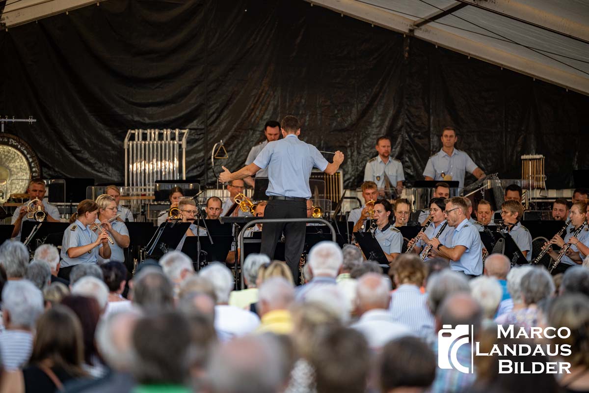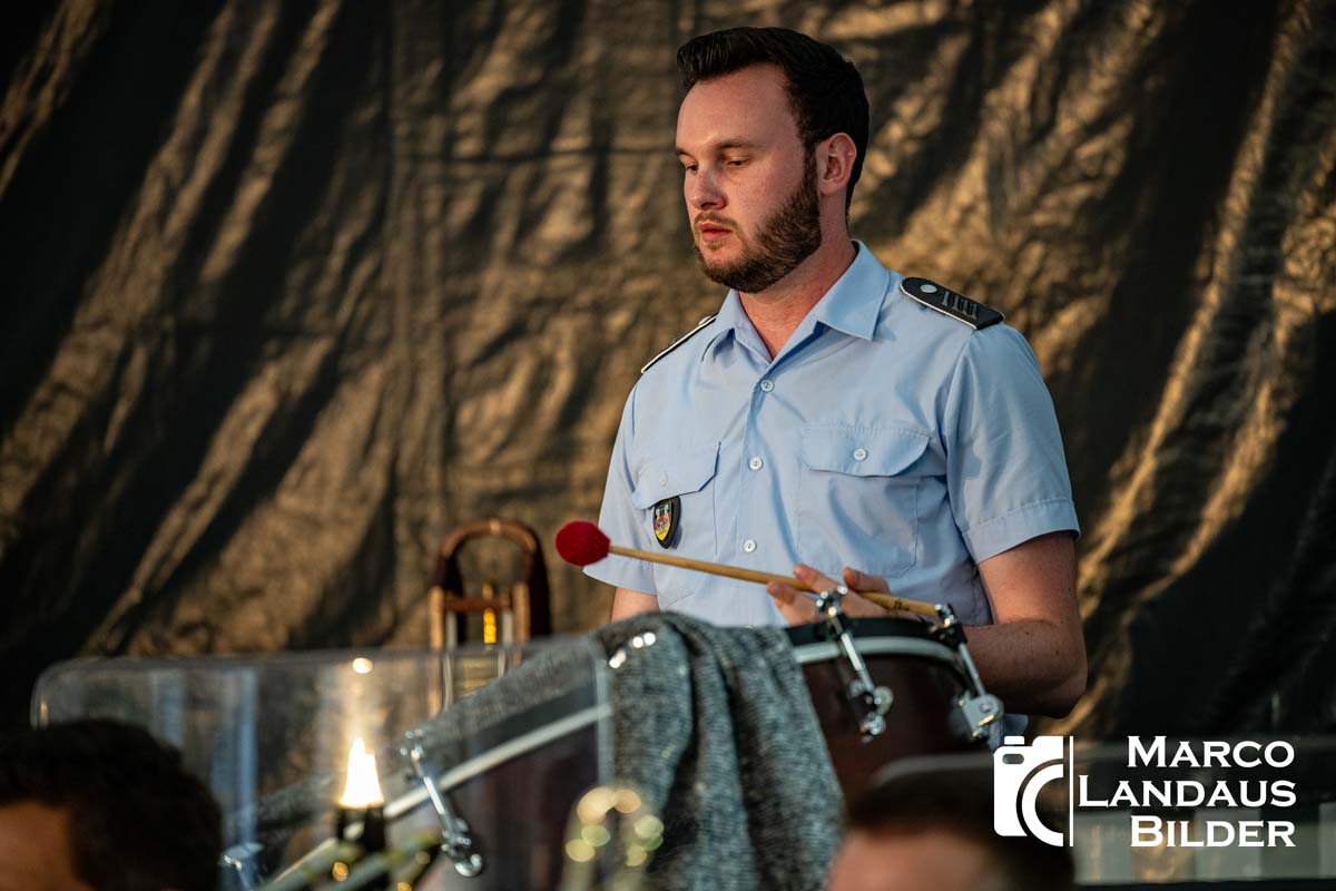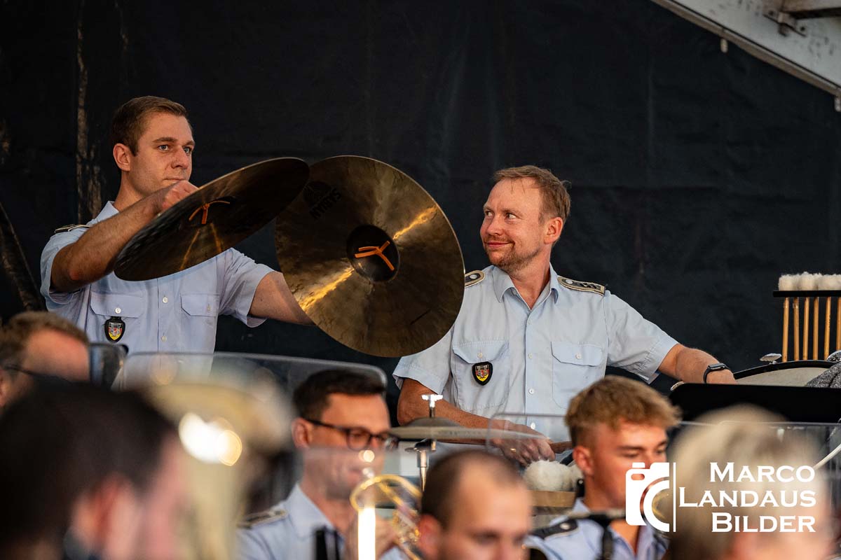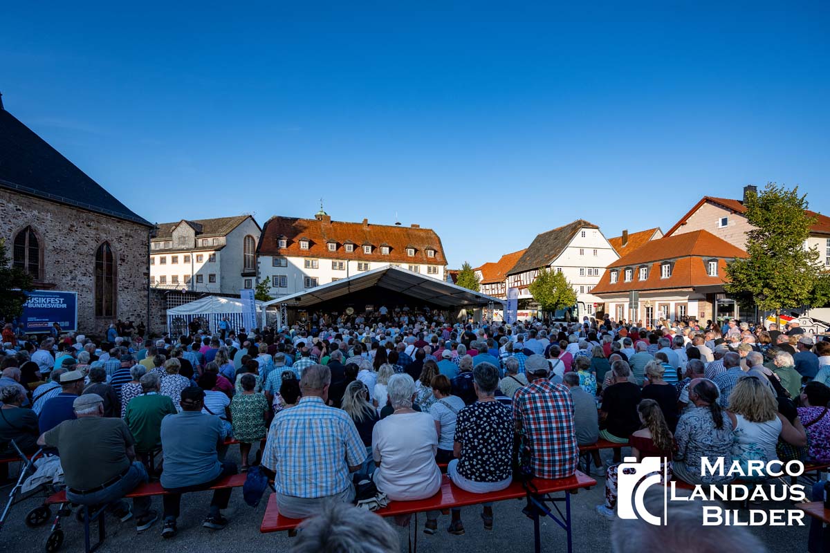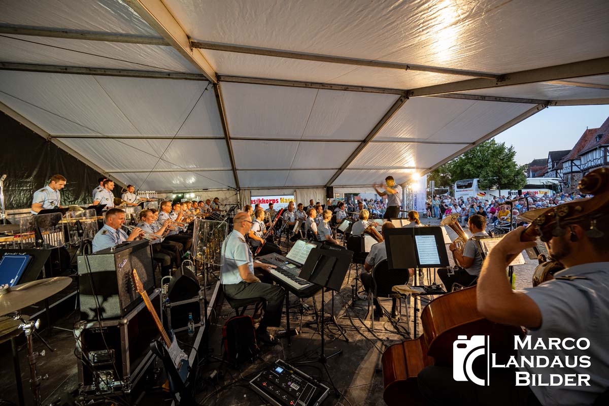 In einer lauen Spätsommernacht verwandelte sich der historische Paradeplatz in Ziegenhain in eine eindrucksvolle Konzertarena. Das Heeresmusikkorps Kassel sorgte für einen unvergesslichen Abend voller musikalischer Höhepunkte. Rund 500 Zuschauer hatten auf vorbereiteten Bestuhlung Platz genommen, viele mitgebrachte Sitzgelegenheiten ergänzten die vorbereitete Kirmesbänke.