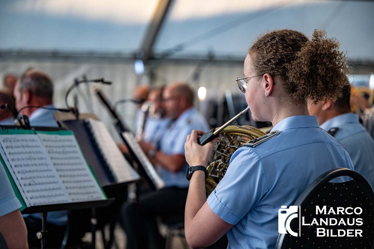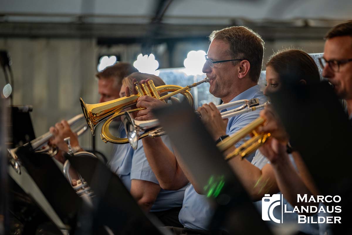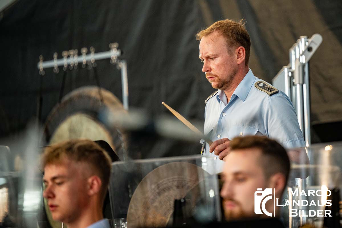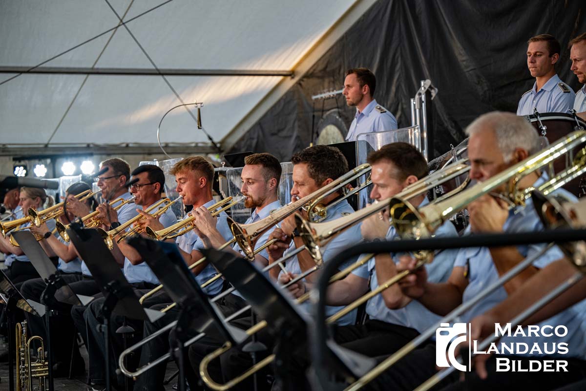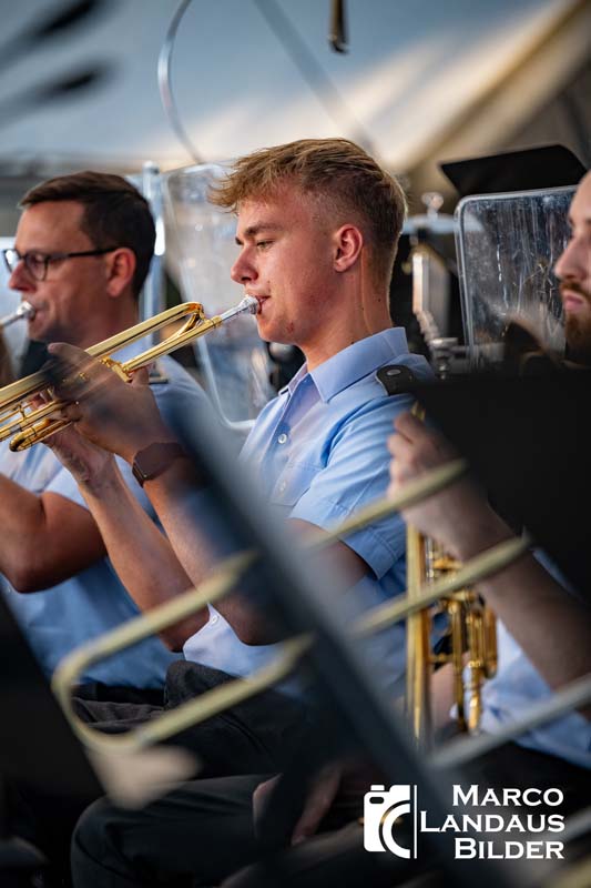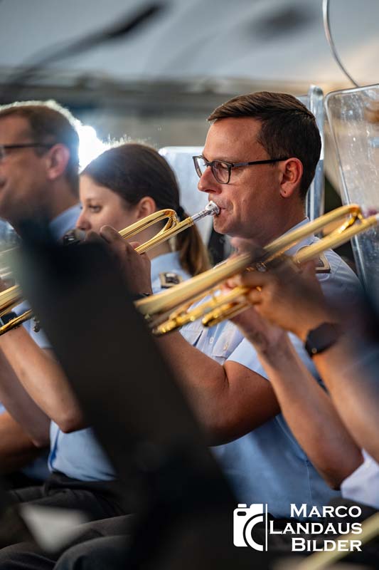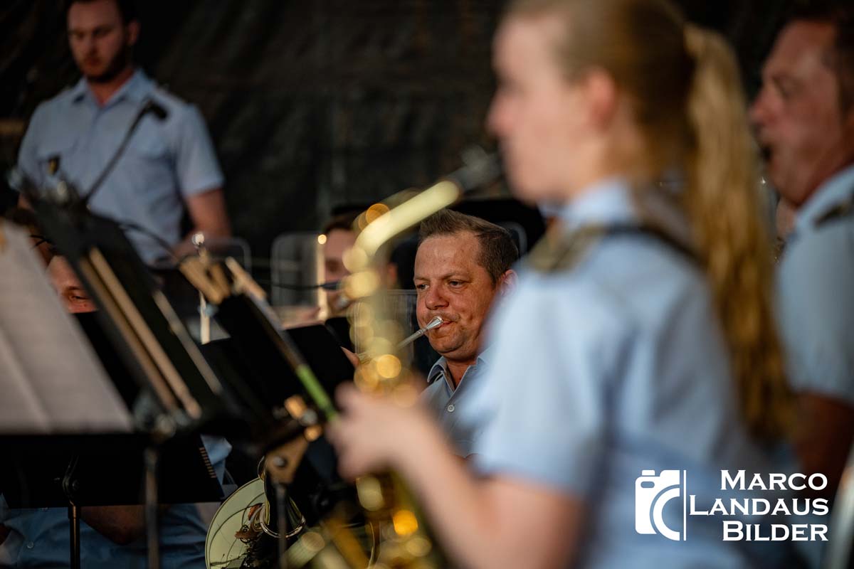 Nach einer kurzen Pause kehrte das Orchester mit neuen Klängen zurück. „Toto for Trombones“ begeisterte das Publikum und zeigte die Vielseitigkeit des Musikkorps. Mit jedem weiteren Stück wuchs die Begeisterung, bis am Ende des Benefizkonzerts die letzten Töne der Nationalhymne verklangen.