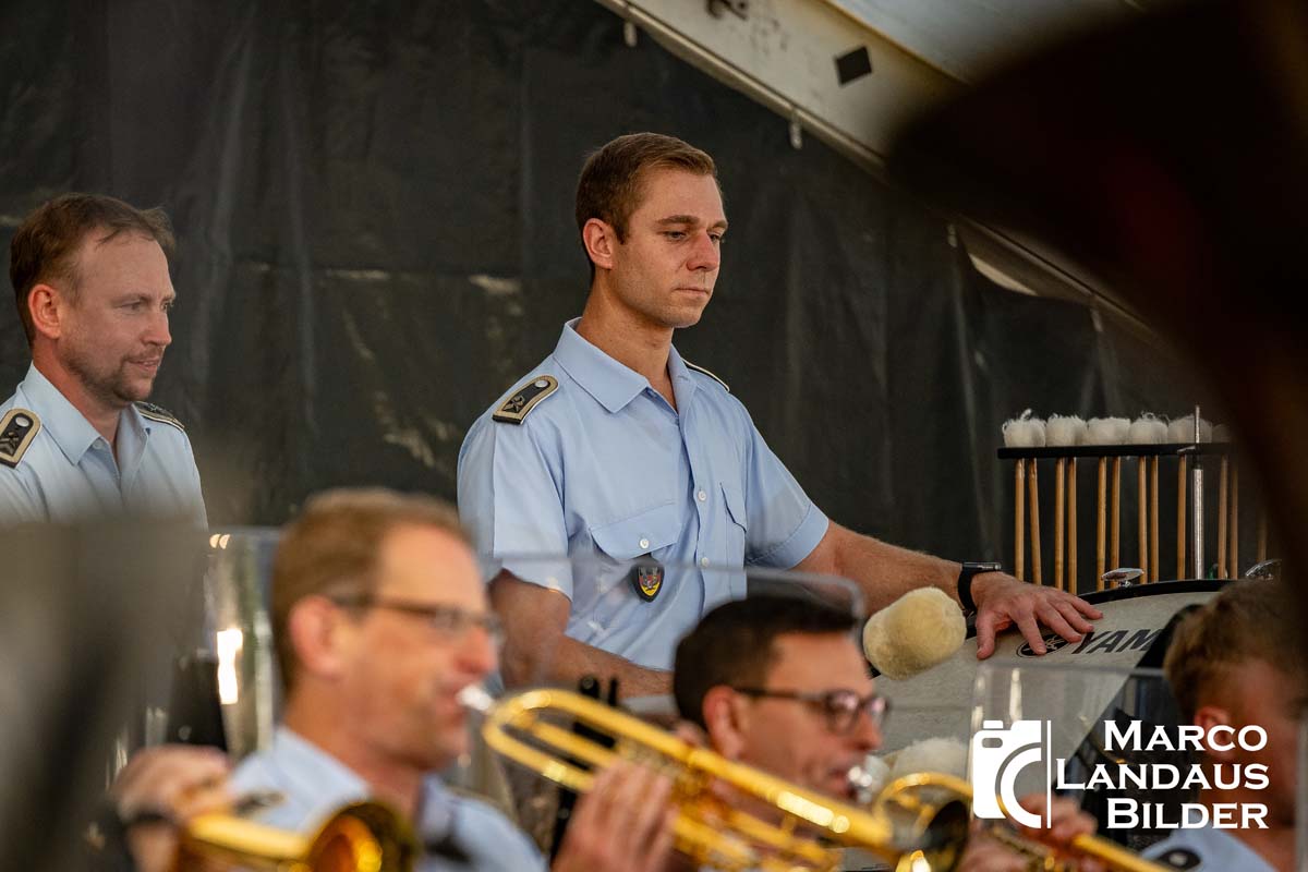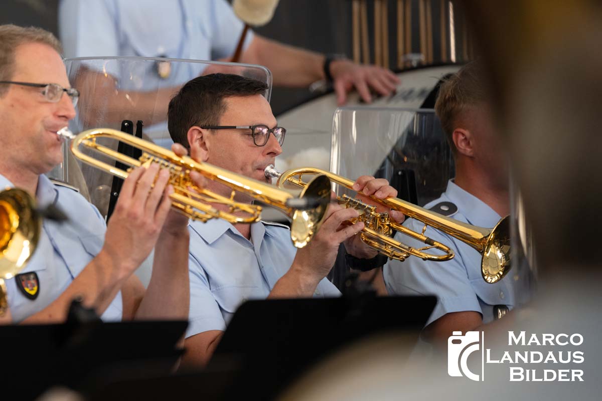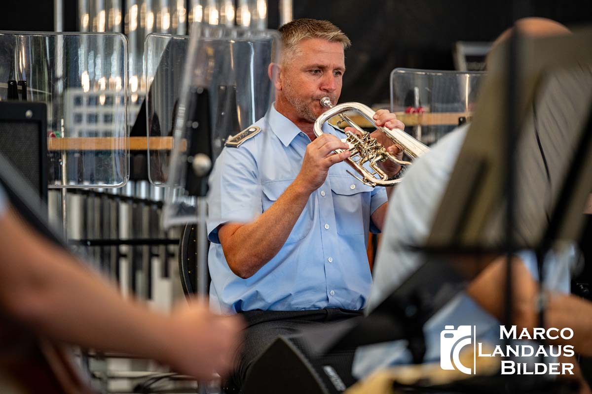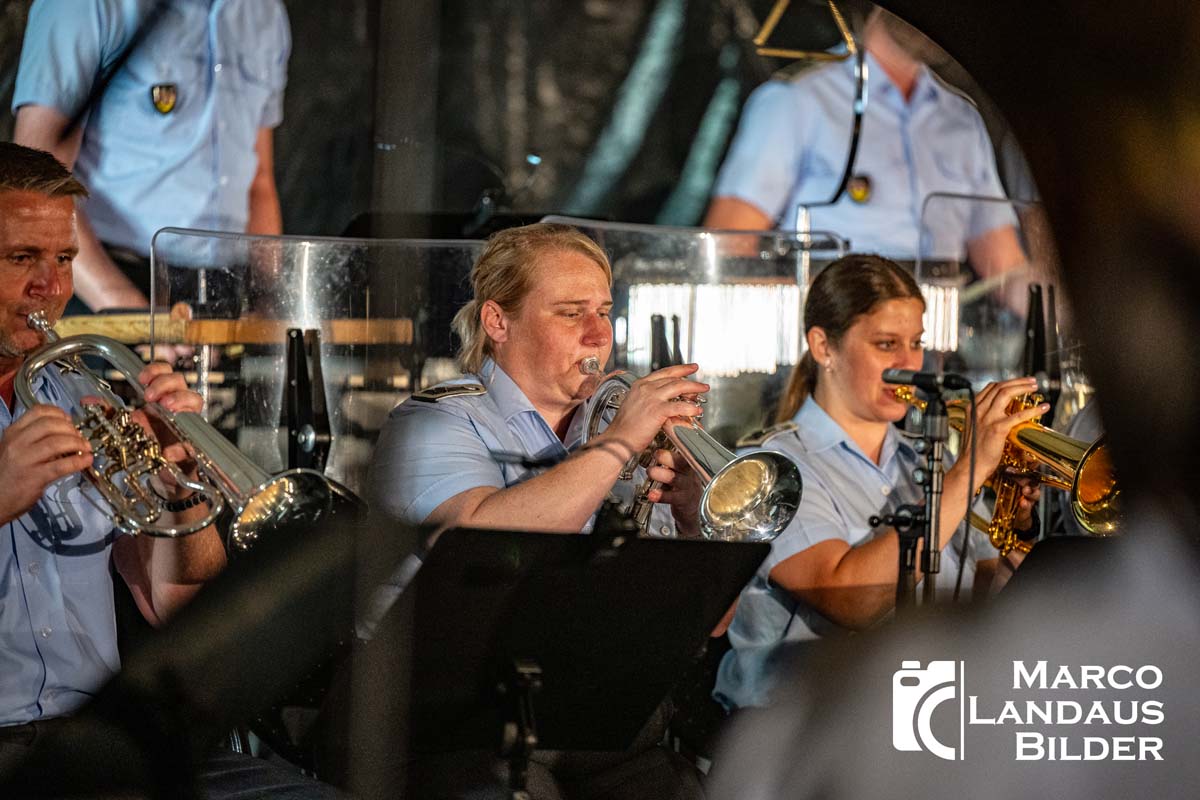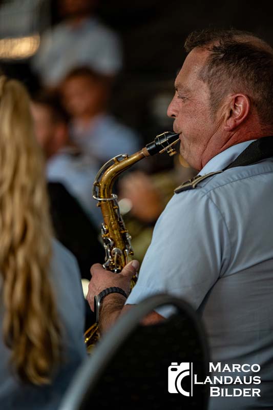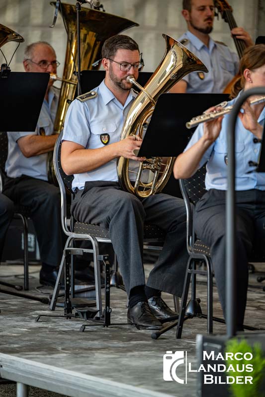 Nach einer kurzen Pause kehrte das Orchester mit neuen Klängen zurück. „Toto for Trombones“ begeisterte das Publikum und zeigte die Vielseitigkeit des Musikkorps. Mit jedem weiteren Stück wuchs die Begeisterung, bis am Ende des Benefizkonzerts die letzten Töne der Nationalhymne verklangen.