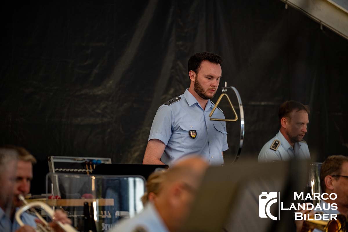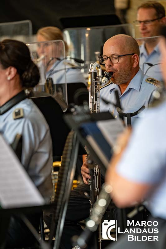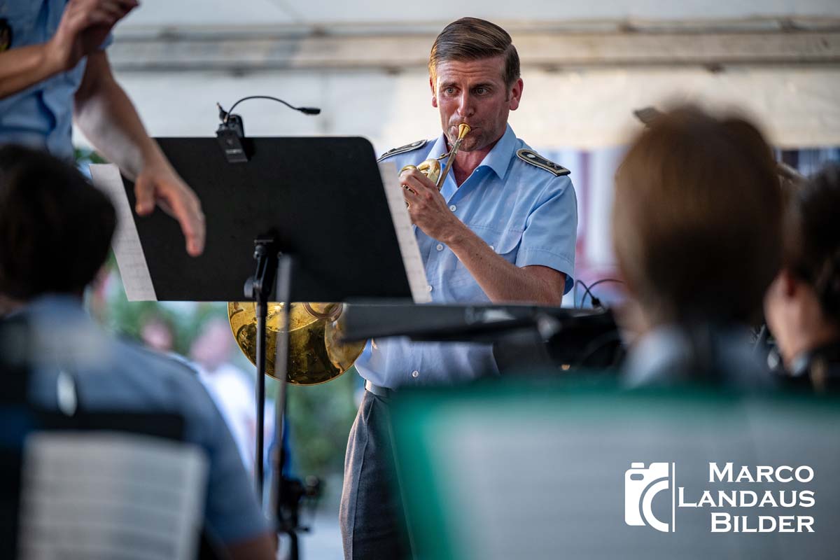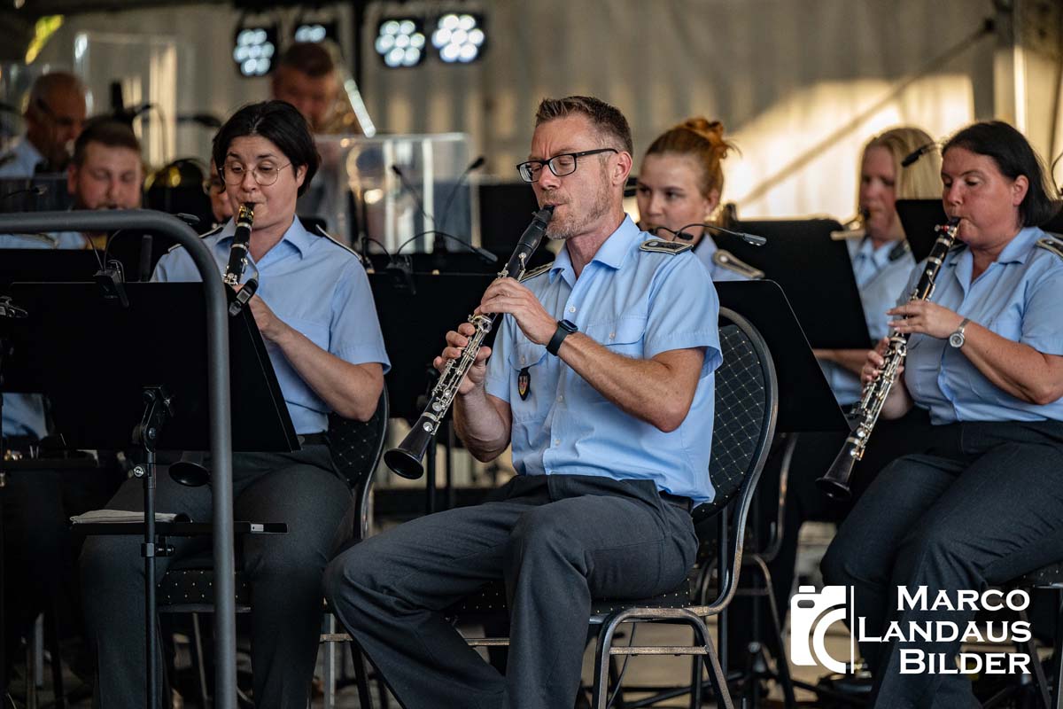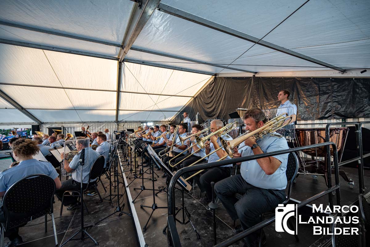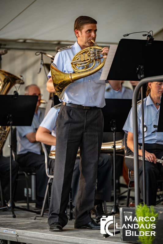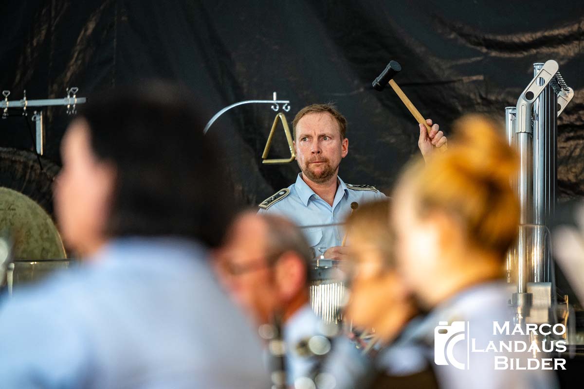 Nach einer kurzen Pause kehrte das Orchester mit neuen Klängen zurück. „Toto for Trombones“ begeisterte das Publikum und zeigte die Vielseitigkeit des Musikkorps. Mit jedem weiteren Stück wuchs die Begeisterung, bis am Ende des Benefizkonzerts die letzten Töne der Nationalhymne verklangen.